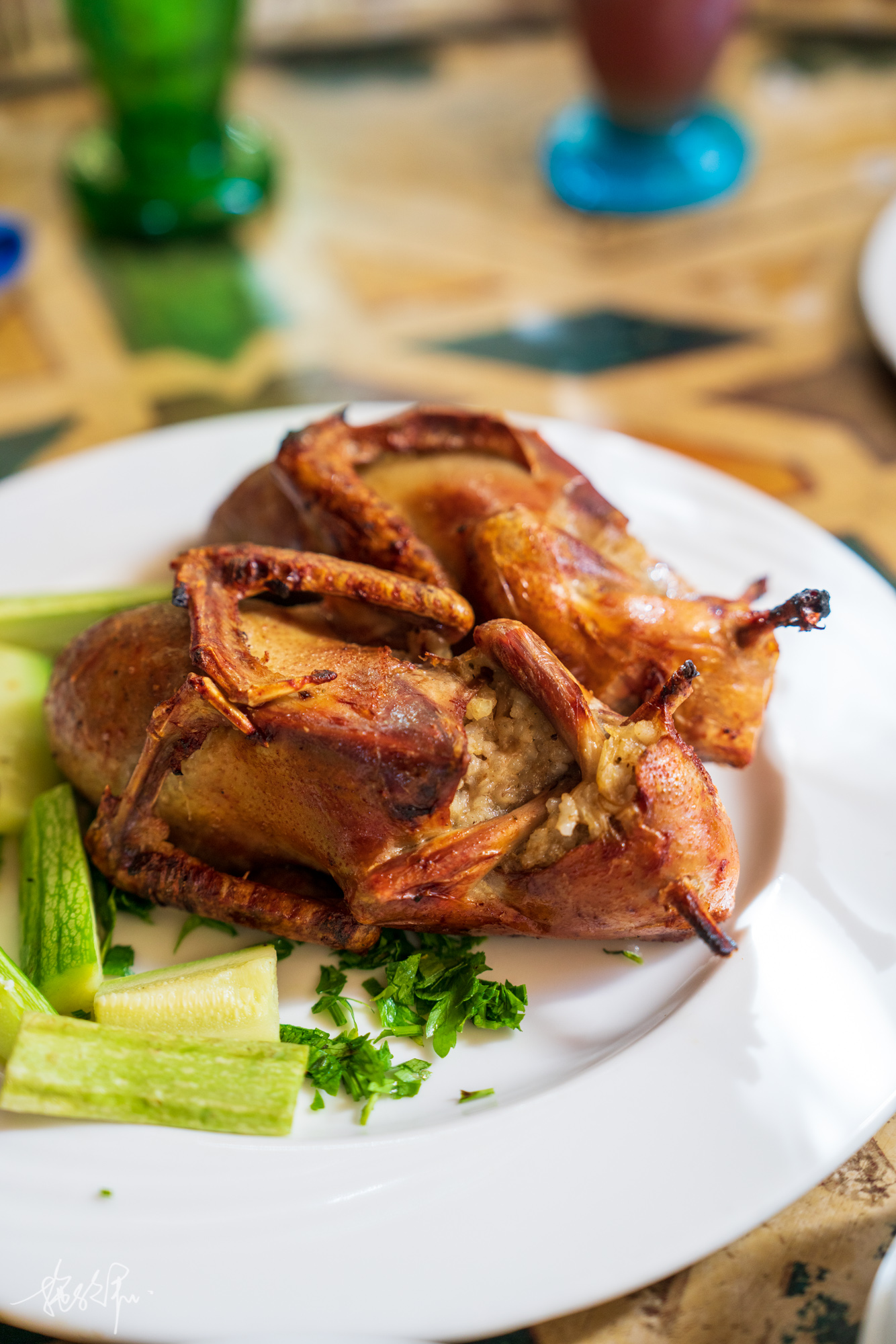 住的地方距离市区1.7km,打了个突突车30镑来市区找饭吃。小蔻推荐的一家餐厅Zarda Restaurant,锡瓦的餐厅可真简陋,就随意搭建的一个草棚子就可以营业了。叫了一个葱烧鸡腿,一个炒鸡肉,还有一个土豆西红柿西葫芦。在埃及,真的很久没有吃过绿叶子菜了,锡瓦基本主要肉食都是鸡肉,其次牛肉羊肉。
