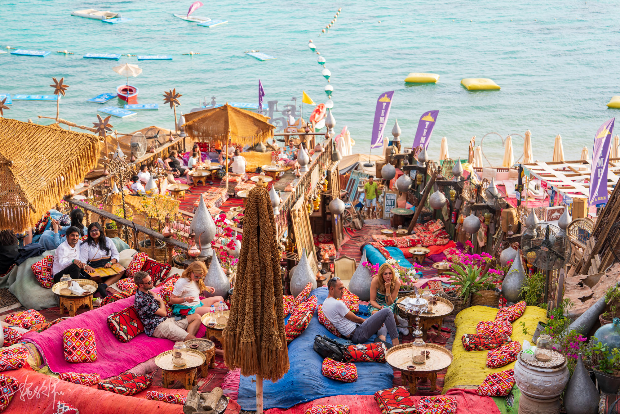看完了金字塔、墓地、神庙,接下来便是躺平时光。沙姆沙伊赫的悬崖咖啡厅就像是童话世界里的场景,旁边就是碧海蓝天,眼前是水烟、啤酒和咖啡,如此幸福,人生何求。