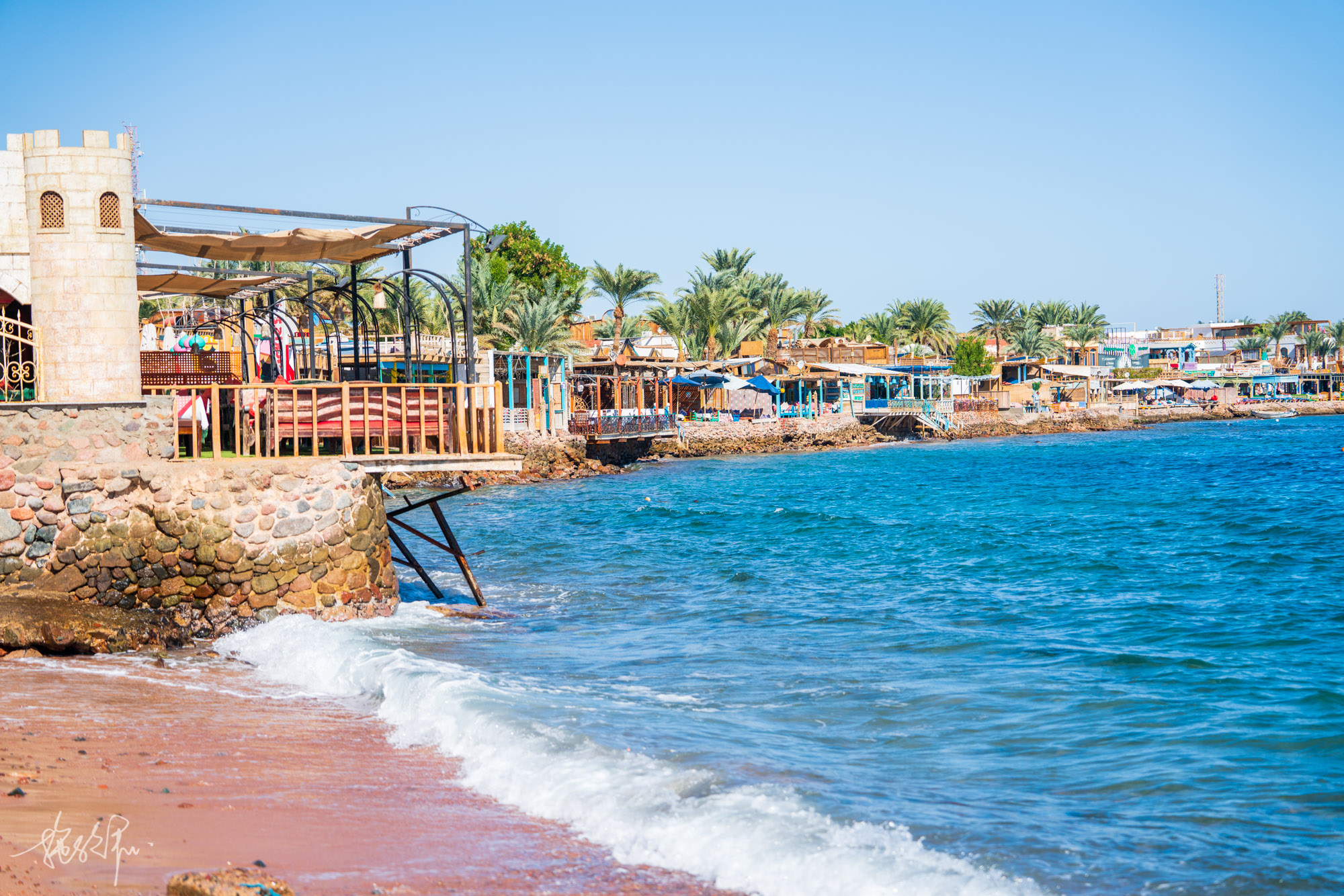 达哈卜是全程最最最最喜欢的地方,它的海边咖啡厅那是一家比一家美,它的海边不收费,可以看到自由的人们在玩风筝冲浪,在达哈卜的海边,感受最深的就是自由和快乐。