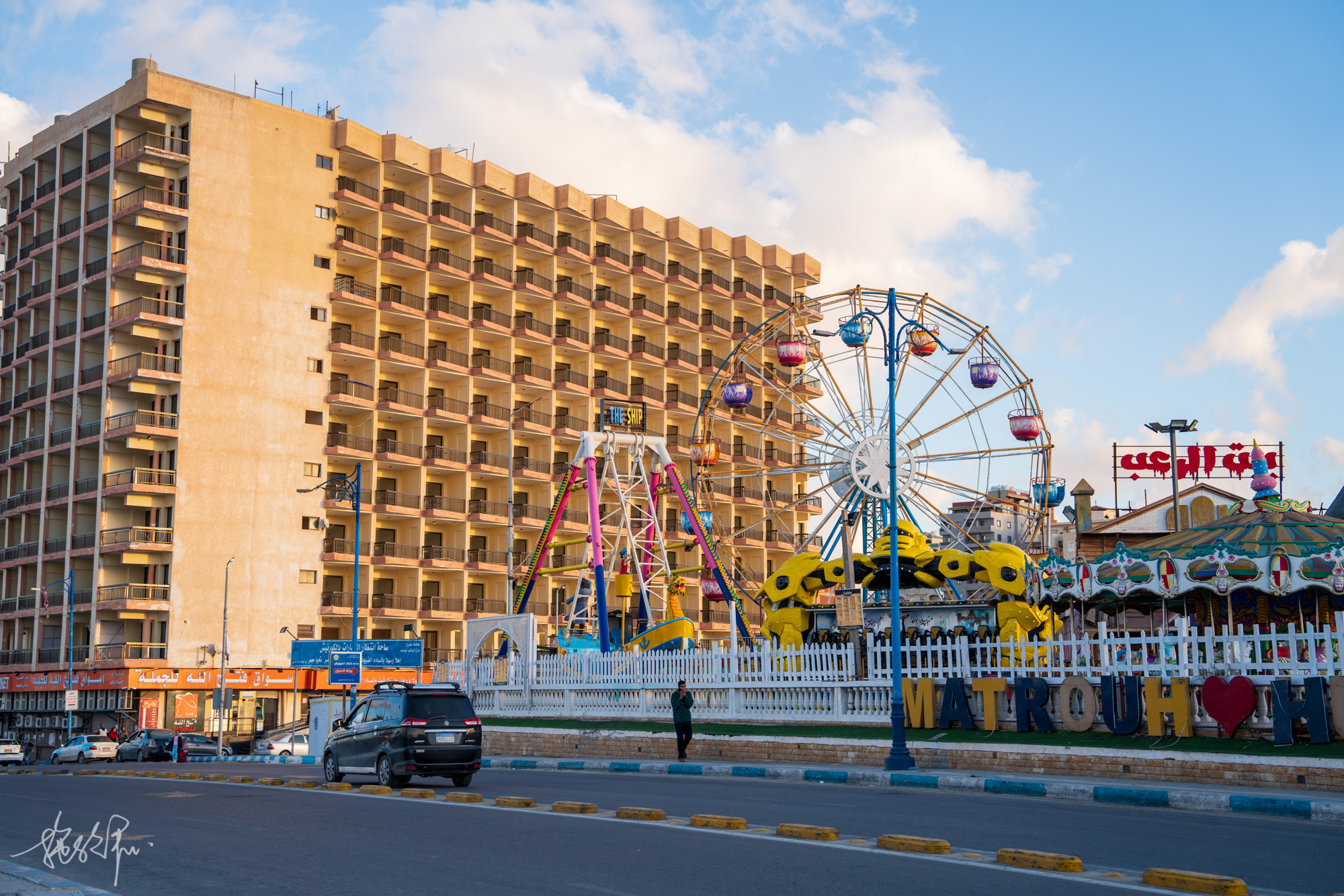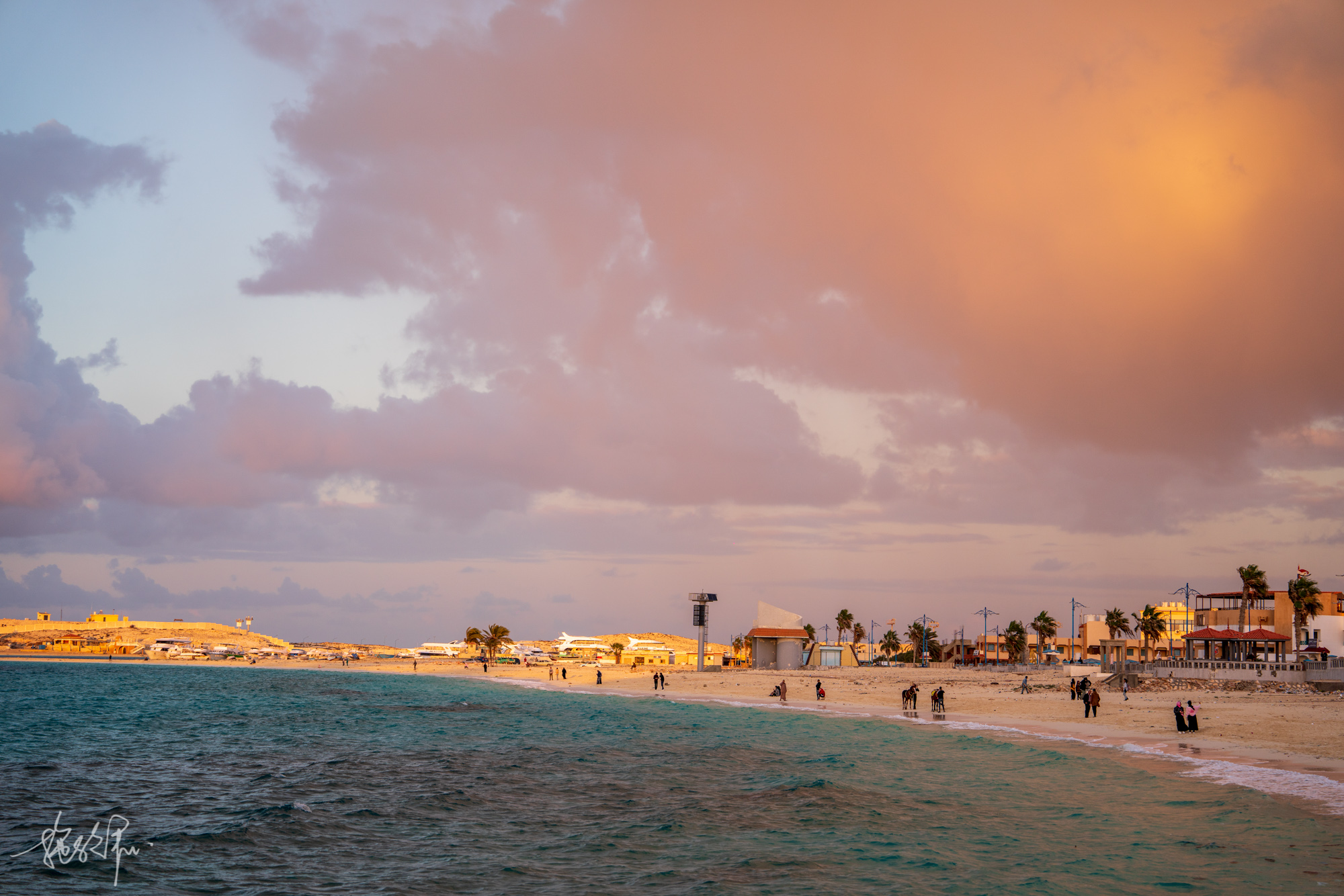 在路上摇摇晃晃都快睡着了,最后一车子人都走光了,只剩下我,司机先生载我到Ageeba停车场,我还开心给他了50埃镑就来到了这么远的海边。