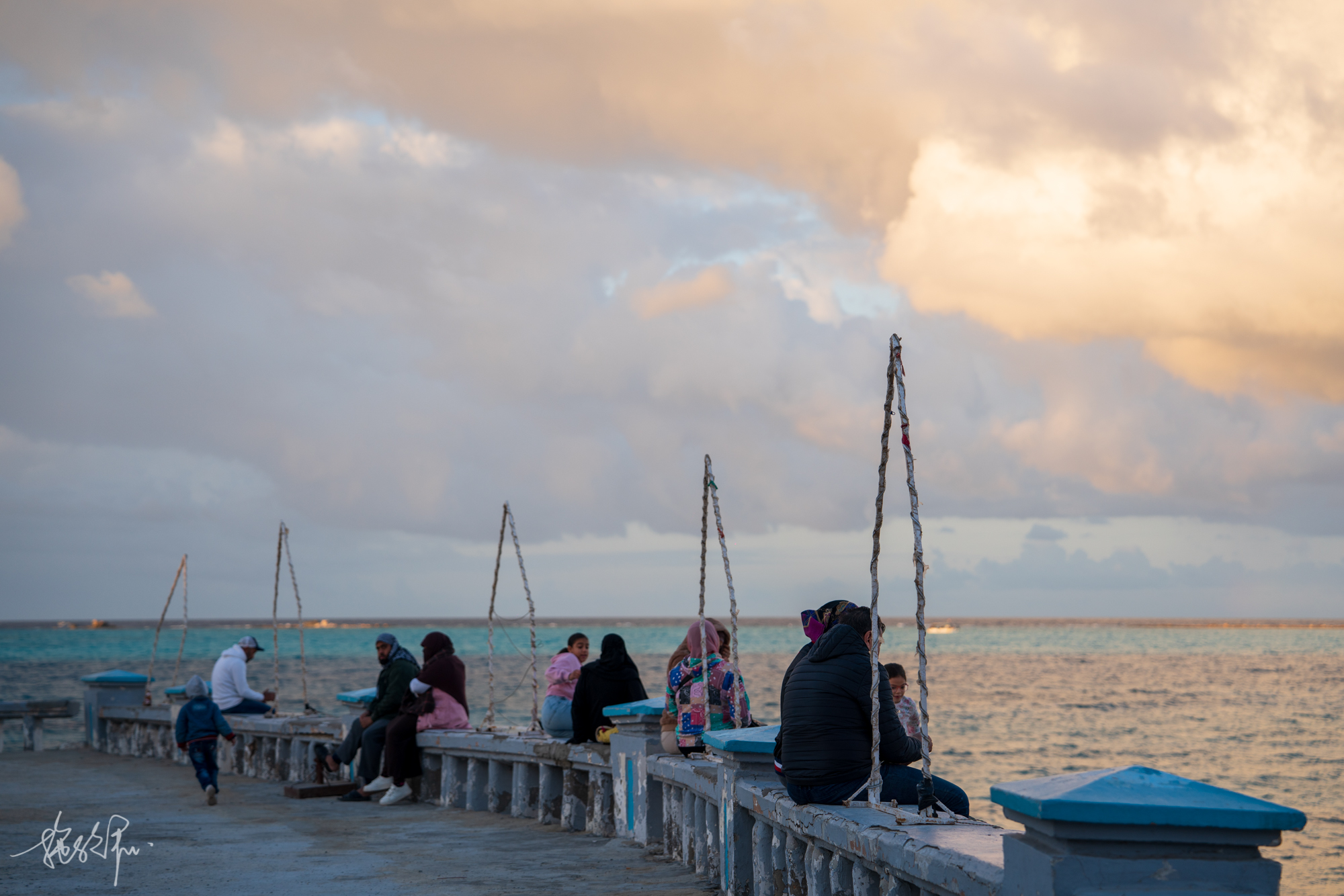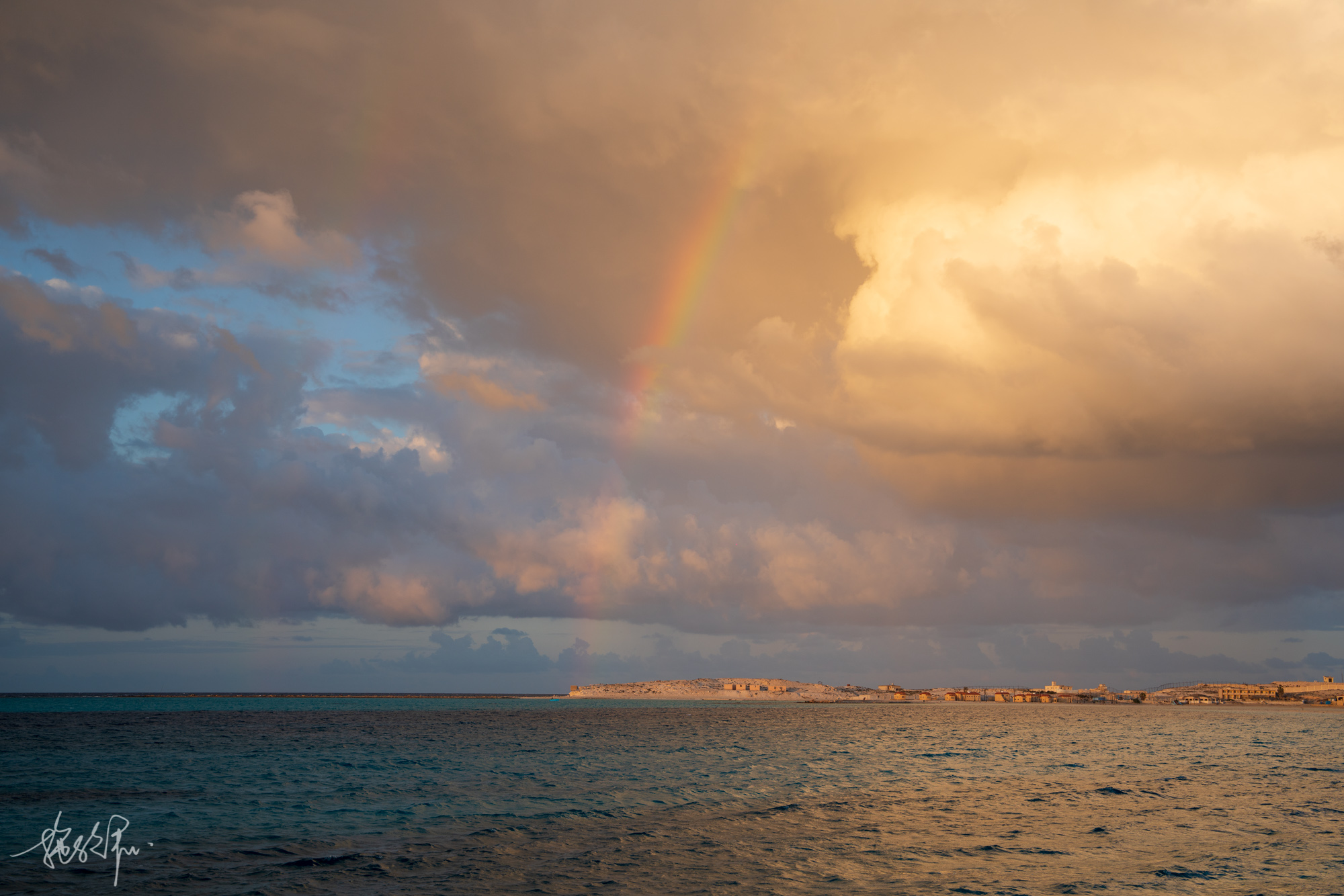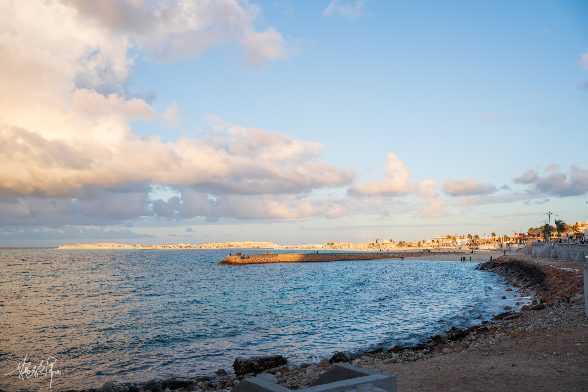 公寓老板给我们推荐了一家Magdy seafood海鲜店,我和黎哥琢磨着散步过去吧,也不到一公里。下楼就是马特鲁市区的大海,这对我来说已经是很马特鲁蓝了。真开心,还在海边遇到了彩虹晚霞!