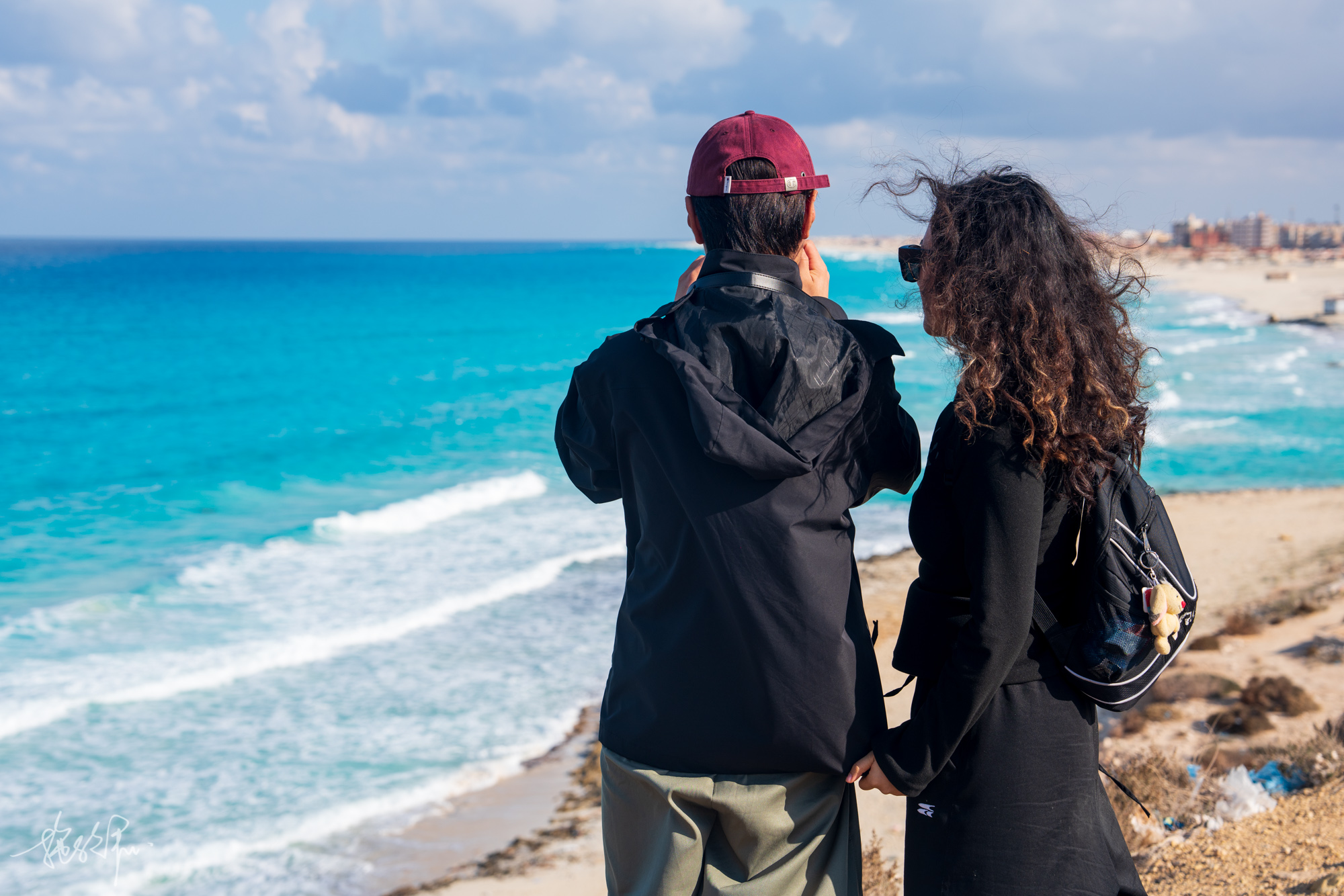 路上下雨了,从亚历山大到马特鲁一路都是海景,坐了很久的车,迷迷糊糊。下车时,有个深圳的姑娘黎哥喊了我一声,问我是否有找地方住,我说有啊,我订了一个超大的海景公寓,就这样捡了一个搭子。