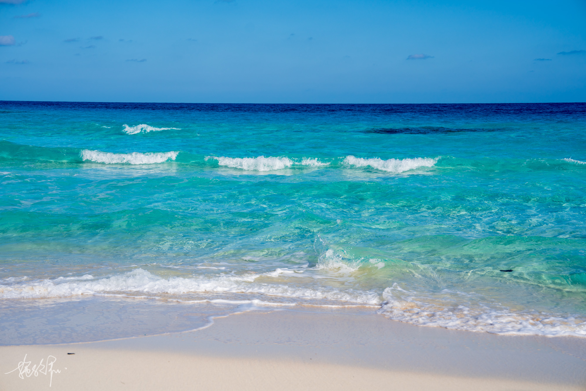 3.重新回到停车场,走向有沙滩的海边。这时候可以在山上俯视,俯拍一张海湾。