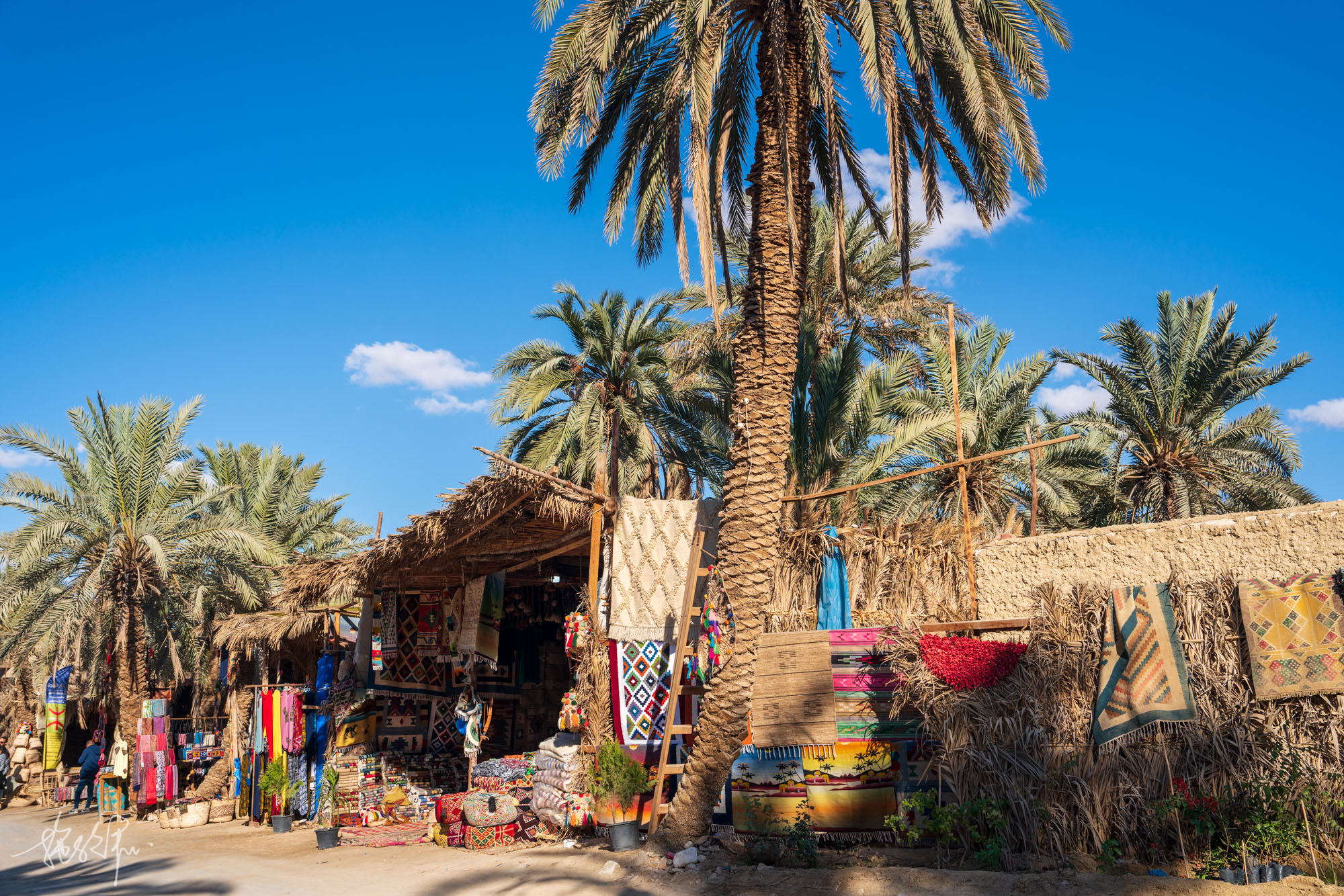 等wei玩完了盐湖,我们便让司机先生带我们去艳后喷泉。Cleopatra Spring艳后喷泉,也叫克里奥佩特拉温泉,这是锡瓦最著名的温泉了,有许多当地人和游客都会在池子里游玩。这个午后,有一群男孩子不停地玩着跳水,周边的椰枣林和咖啡馆都非常的锡瓦风格,藤竹编织而成的桌椅,五颜六色的地毯,好像随便喝杯饮料就可以在这里度过一个美好的下午。