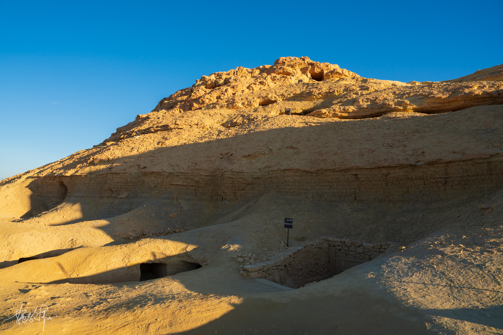 我们眼前这座亡灵之山曾被锡瓦人在第二次世界大战中用来躲避意大利轰炸的掩体,如今看来这一个个往里伸入的洞确实很适合。
