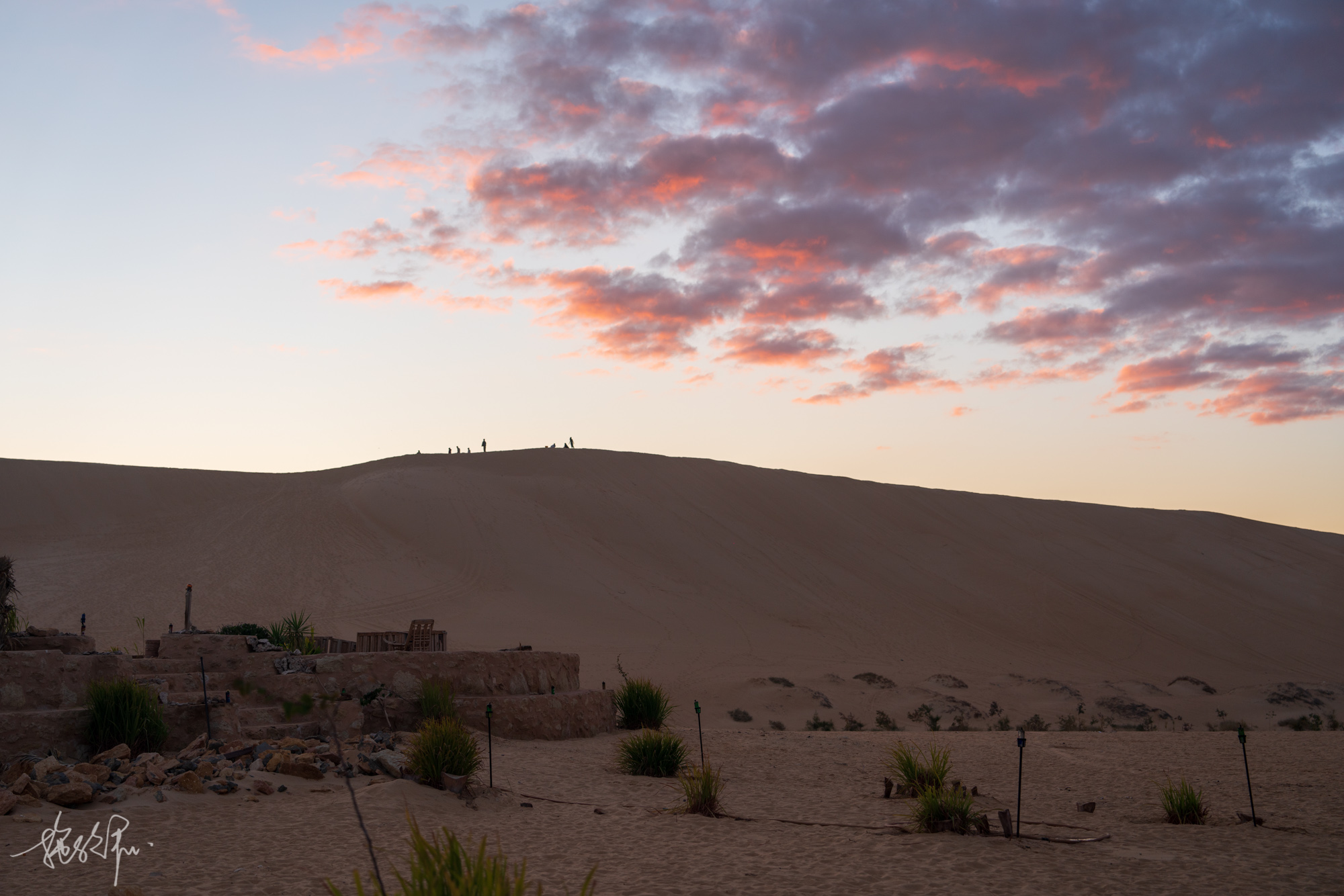 等北京大哥他们吃完饭我们便出发去撒哈拉沙漠的边缘了,我是没有想过我这么快就能来到这片沙漠,曾经感觉遥不可及的地方,有一天也真的来到了。二零二三年的最后一天跨年夜,沙漠的另一头有很high的Party,他们的灯光秀一直影响着我们看星空。即便是爬到了山坡上,也依然只能见到星星点点,银河拍不到,到底还是光污染太严重了。不过,见多了西藏高原上的星空,再看别的,都是将就。
