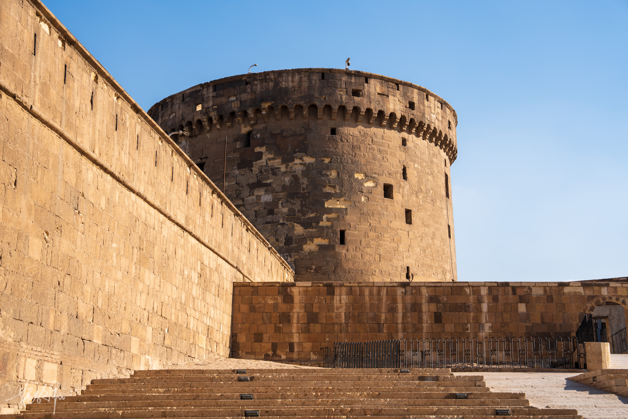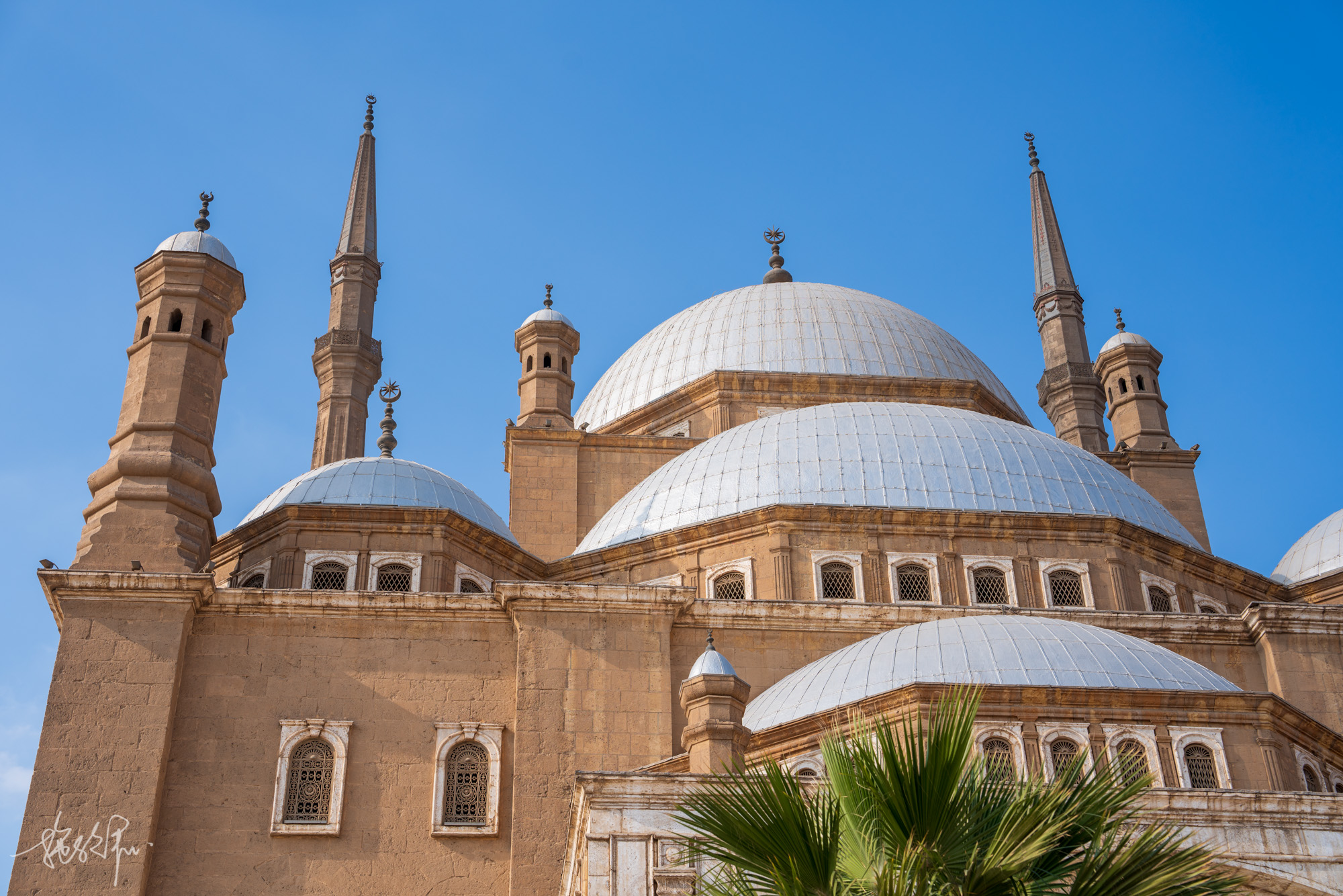 进入城堡,映入眼帘的就是巨大的石灰岩城墙,走进一小段路就能看到一个大门上楼梯就来到了整个城堡里面最重要的景点:穆罕默德阿里清真寺,它有着“雪花石膏清真寺”之称,当你亲眼所见这座清真寺,你一定会感慨怎么会有如此美妙的建筑。它有着全埃及最高的82米的塔尖,而且这座清真寺是集苏丹阿曼清真寺和土耳其索菲亚大教堂混合的一个建筑风格,非常好看。