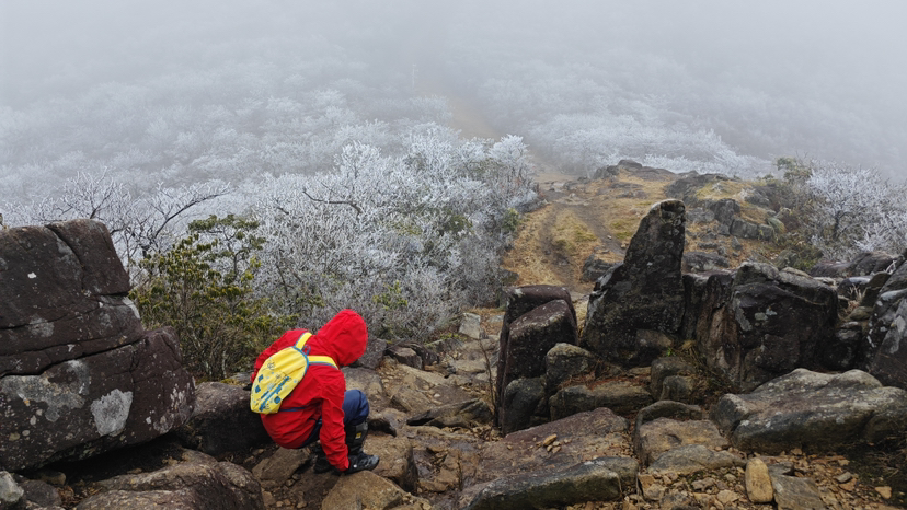 自恃风流落人间,无定飘摇不言愁,却惹青山满白头。继续往上攀登,正午时分,我终于到达了天目山最高峰-龙王山之巅(海拔1587.4米)。站在这里,我仿佛能触摸到天空,周围的群山都在脚下绵延开来。极目远眺,千里冰封,万里雪飘,云海翻腾,那一片白茫茫的大地与天际相接,形成了一幅绝美的画卷。天空中飘洒着细碎的雪花,它们在空中轻盈地舞蹈着,仿佛是在庆祝我胜利登顶,接纳我的到来。我闭上眼睛,感受这冰雪世界的纯净与宁静。在这里,时间仿佛放慢了脚步,让人忘却尘世的喧嚣和疲惫。