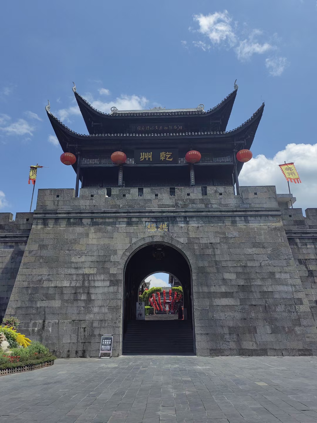 位于湖南省湘西自治州首府吉首市区内的万溶江河畔,这里交通便捷,是湘、鄂、渝、黔四省边区传统的物质集散中心。这里三陆横陈、二水绕洲,状如乾卦,故称"乾州"。乾州古城历史源远流长,有4200多年历史,古属五溪蛮地,夏商时期就有土著先民在此繁衍生息。秦汉以后,因水利舟楫之便,这里成为湘西重要的商埠码头。唐宋元明清时期,乾州古城成为苗疆地区政治、经济、文化、军事中心。乾州古城人杰地灵。在这块古老而又神秘的土地上,先后养育了明正德年间致力家乡教育事业的苗族知识分子吴鹤;清乾嘉苗民起义领袖吴八月;光绪年间,不顾年迈,在家乡募兵到闽、台抗法的陕甘总督杨岳斌;率兵抗击八国联军、保卫大沽口、以身殉职的天津总兵罗荣光;民国期间,涌现了民国陆军次助长傅良佐上将和热心苗区教育,潜心研究苗族问题的苗族学者石启贵;中国当代画马四杰之一的张一尊等一批民族英才。穿行在城中大街小巷,确实感觉此城历史厚重,名人辈出。文庙保存相当完整,还看到城中大娘在包裹桐叶粑粑,只是还没煮熟无法购买。乾州古城,值得一游!