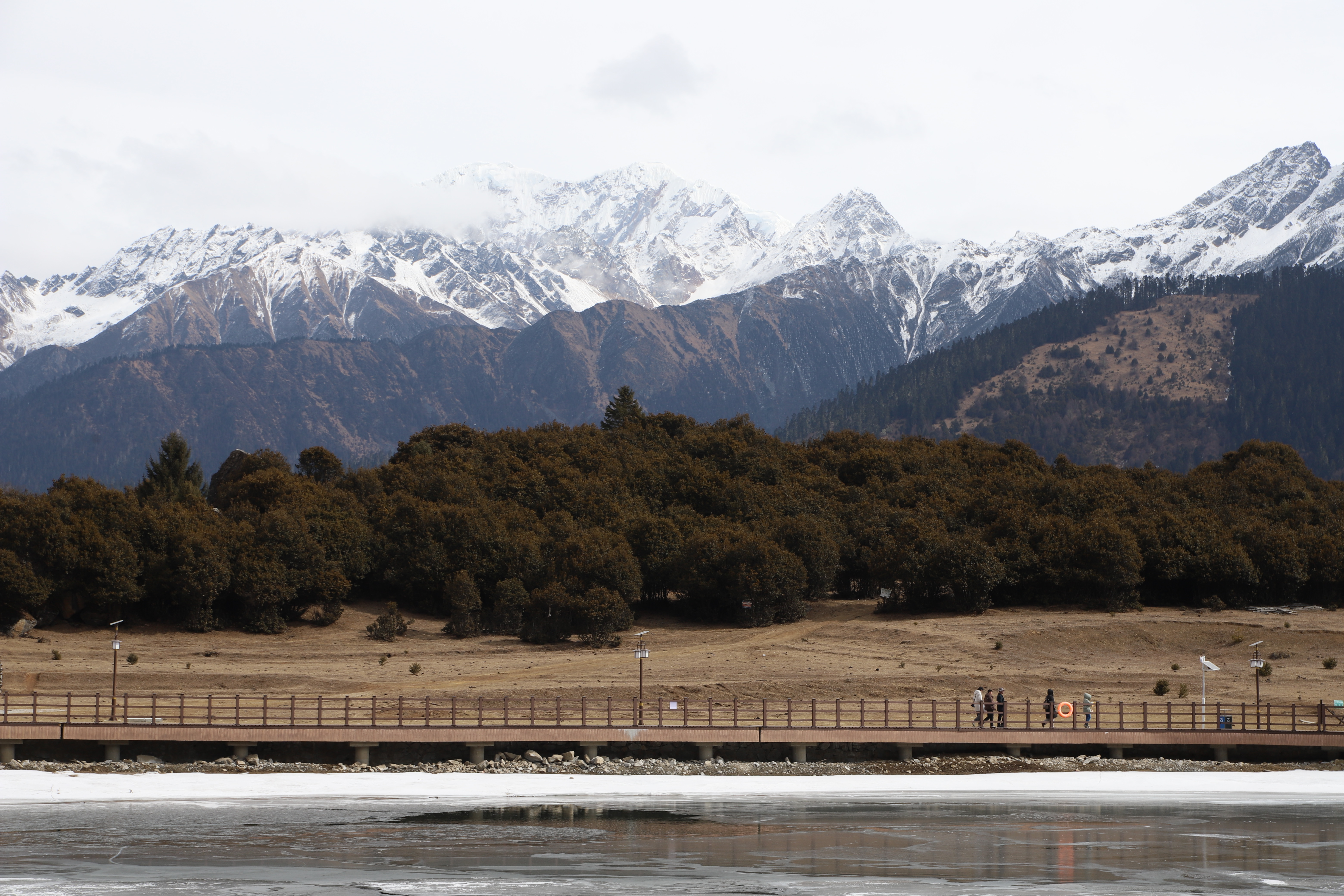 如今,新铺设的柏油路可以直达雪山脚下的森林,柏油路的尽头徒步便能抵达观赏朗秋冰川的最佳地方:玉措湖。