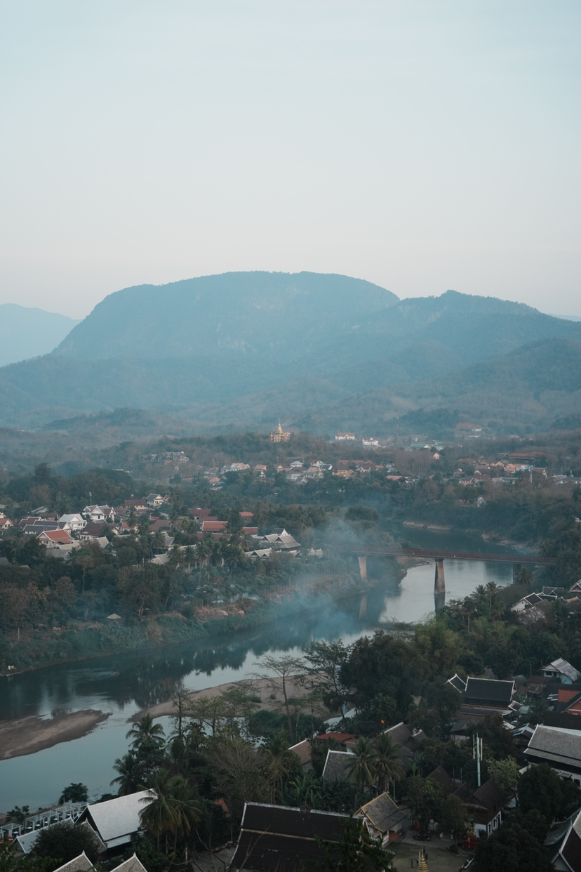 在老挝的松弛感可能莫过如此,找一天爬上浦西山,一边往下看着湄公河上慢悠悠驶过的船只,一边看着琅勃拉邦古城鳞次栉比的法式建筑,静静地一直等到天变换多种颜色……