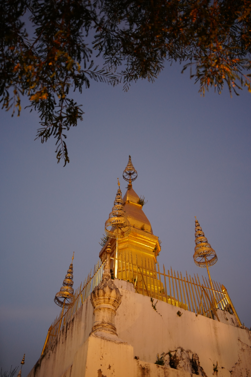 赶在日落前,我们出发琅勃拉邦古城的制高点【普西山 Phu Si Hill】,这绝对是当地观赏日落晚霞和俯瞰琅勃拉邦古城全景不容错的的绝佳地点,山顶还有一座名叫宗西塔的24米高镀金佛塔,为此地增添了一份神圣的气息。