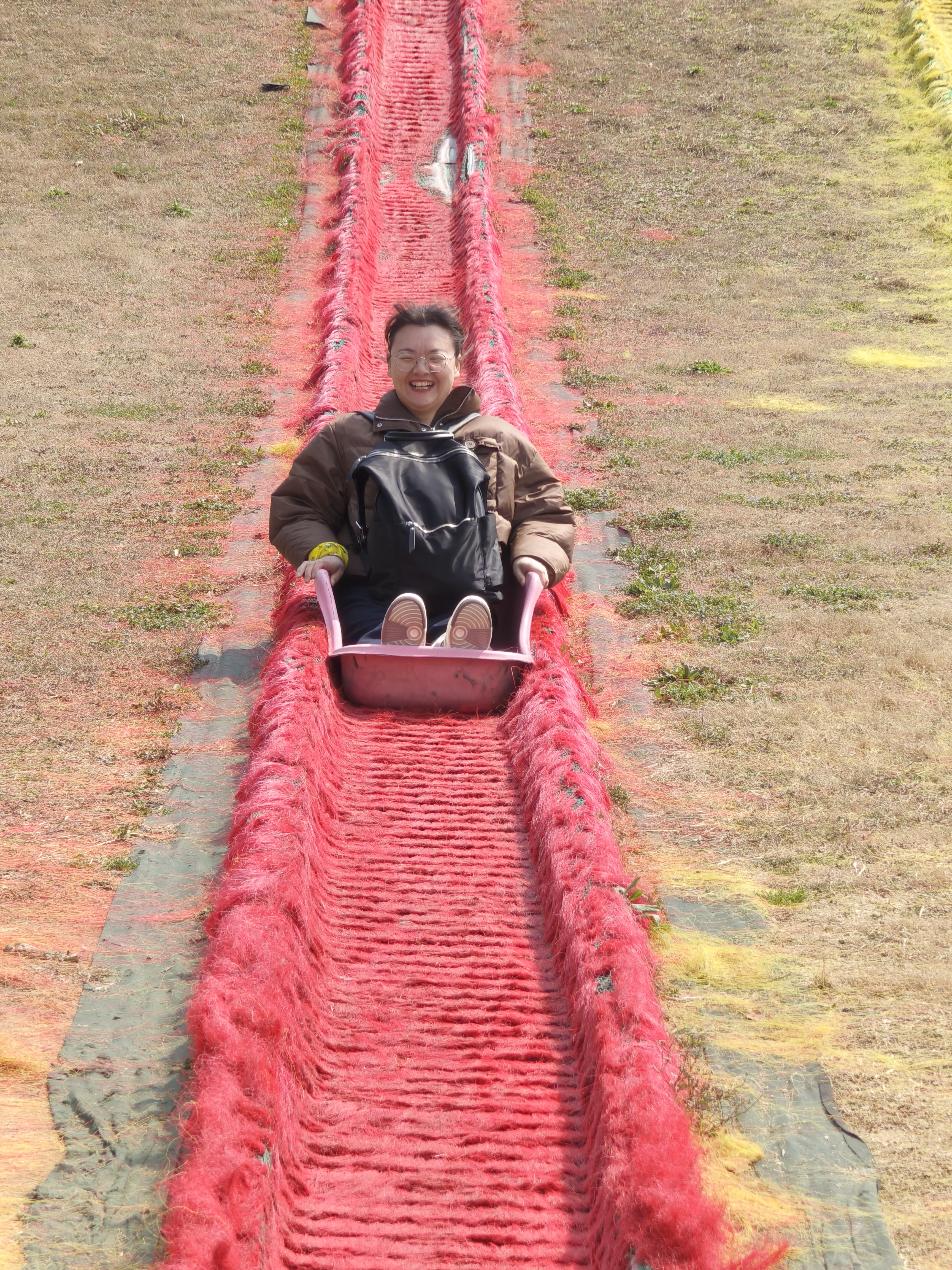 游玩第二站是滑草,滑草山坡挺立在蓝天下的坡顶,小朋友们早已经摩拳擦掌,跃跃欲试,身后一松!身体向前一倾,大地迎面扑来,心跳加速,体验瞬间的失重感!