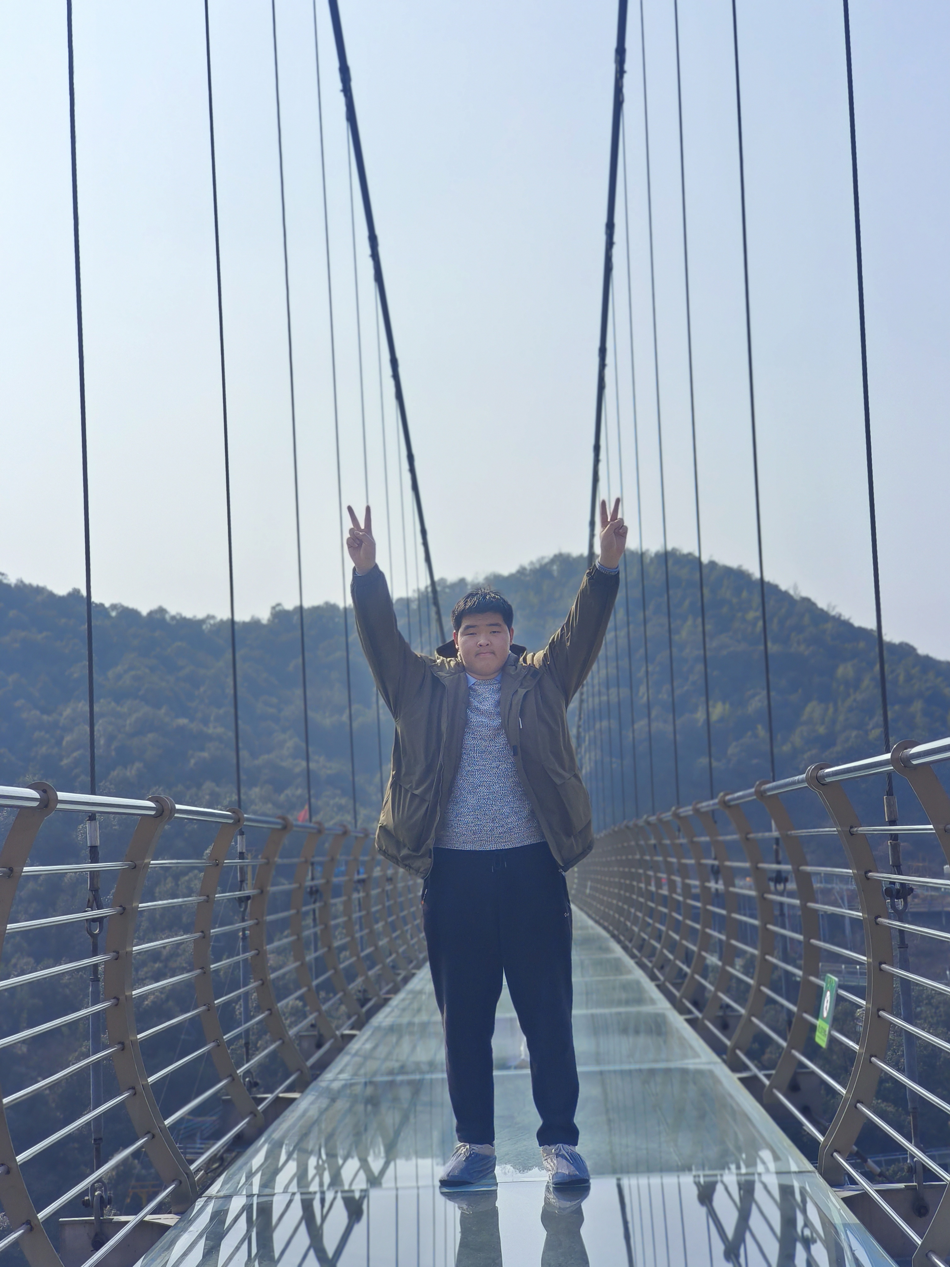 中午在原乡餐厅饱餐一顿之后,开始了我们赏梅之旅。小镇内坐拥千亩梅花观赏园,沿山势建原枕木观光栈道,我们沿着观光栈道来到一座288米长88米落差及酷炫5D特效的玻璃桥,走在全透明的高空桥上观赏层层叠叠的梅花和山林,真的太美了!