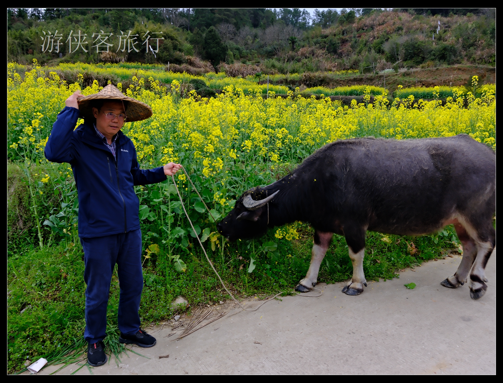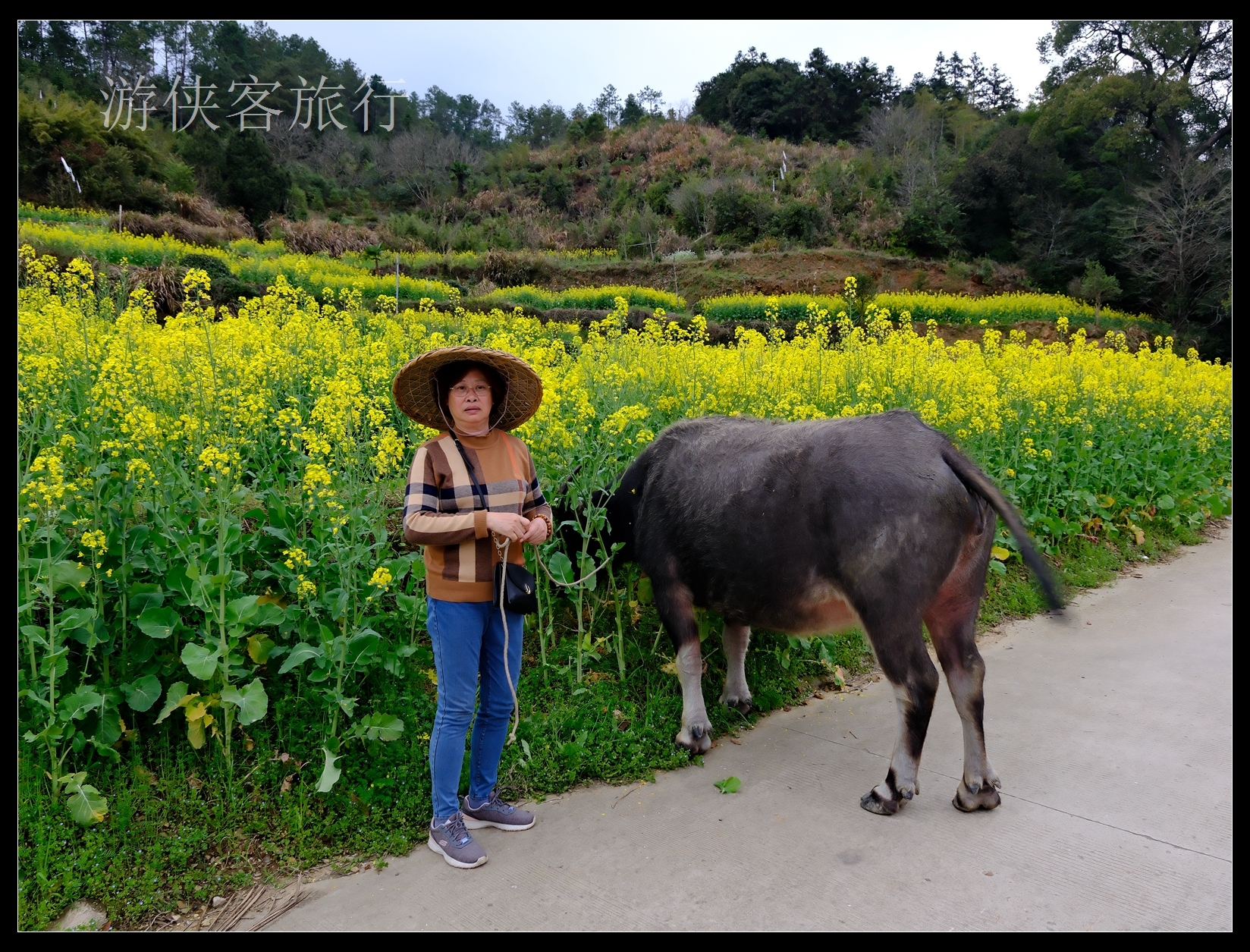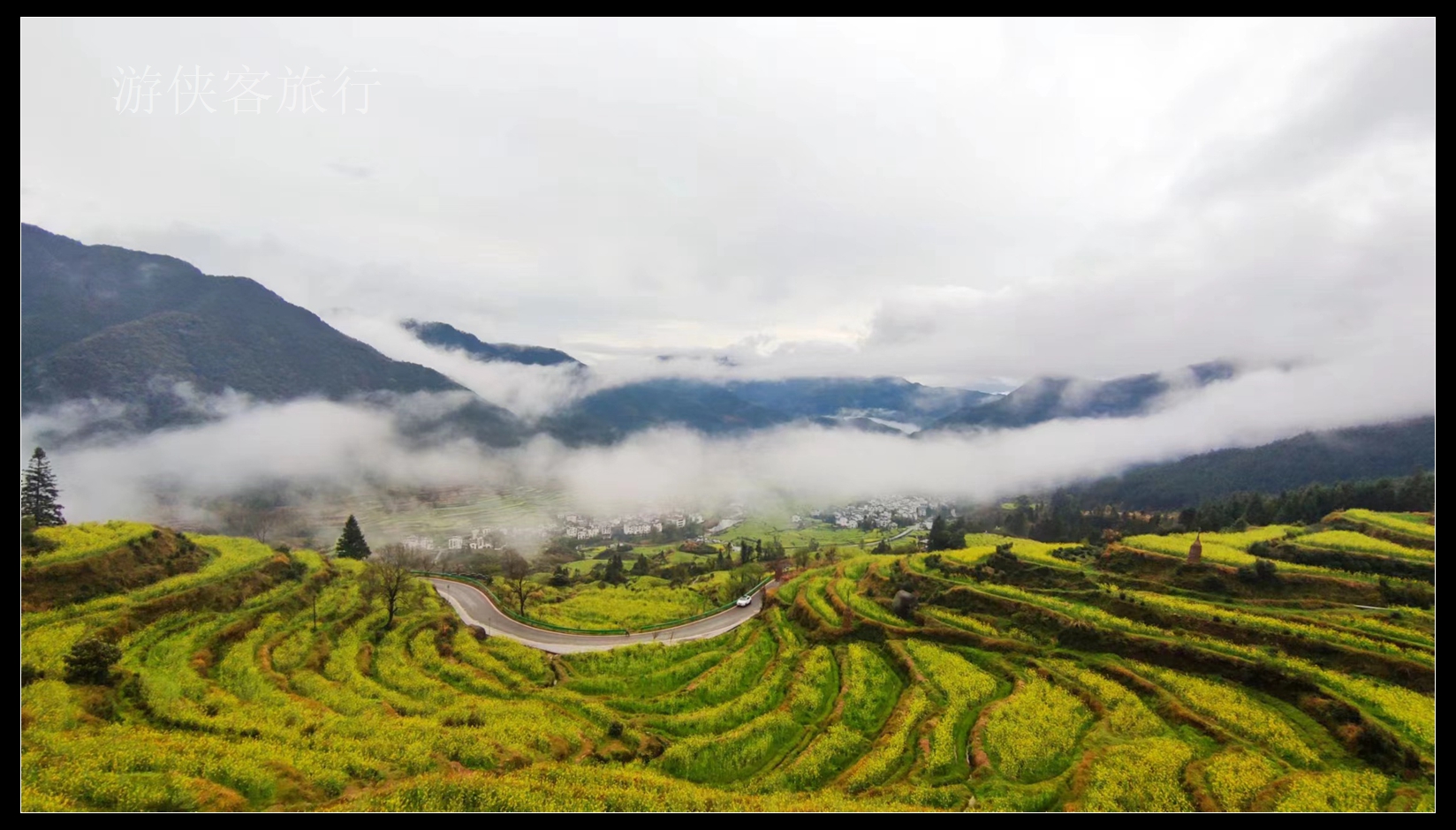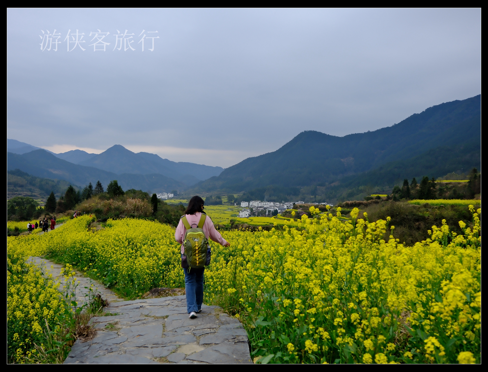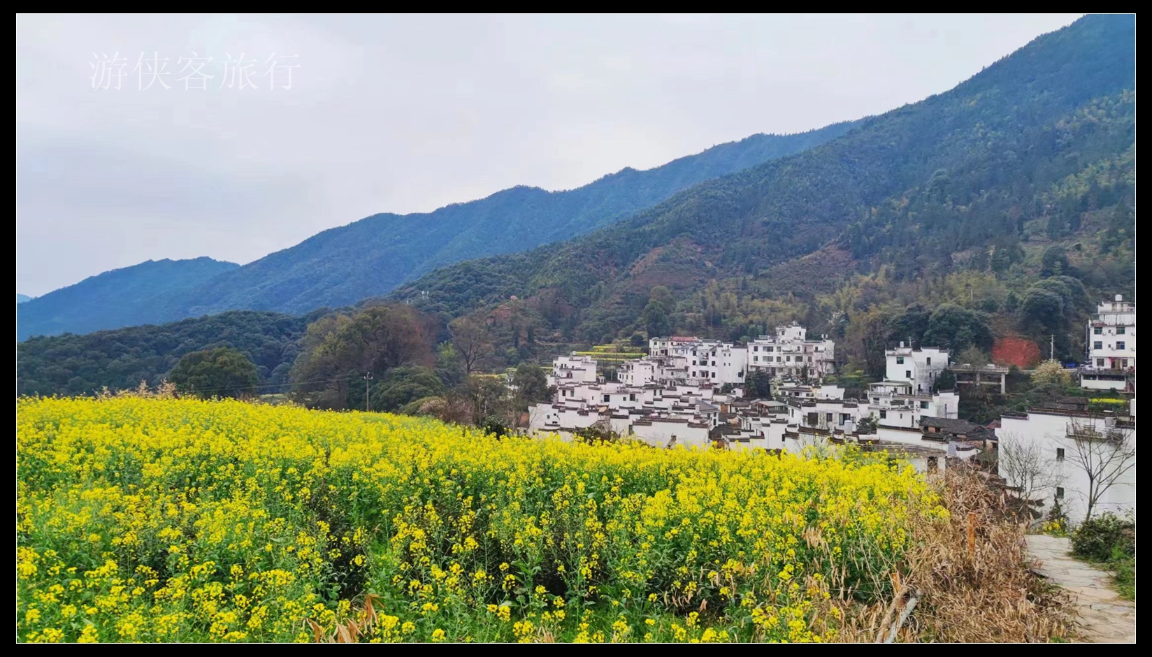 那里漫山遍野的油菜花呈梯田状,从山顶铺散到山谷下。站在山顶望去,脚下大片的山谷内,油菜花层层叠叠,一望无际,中间围拢着几个小小的村落,黑瓦白墙的徽派民居夹杂在一片金黄之间,在婺源再没有比这更壮观而令人惊喜的了。