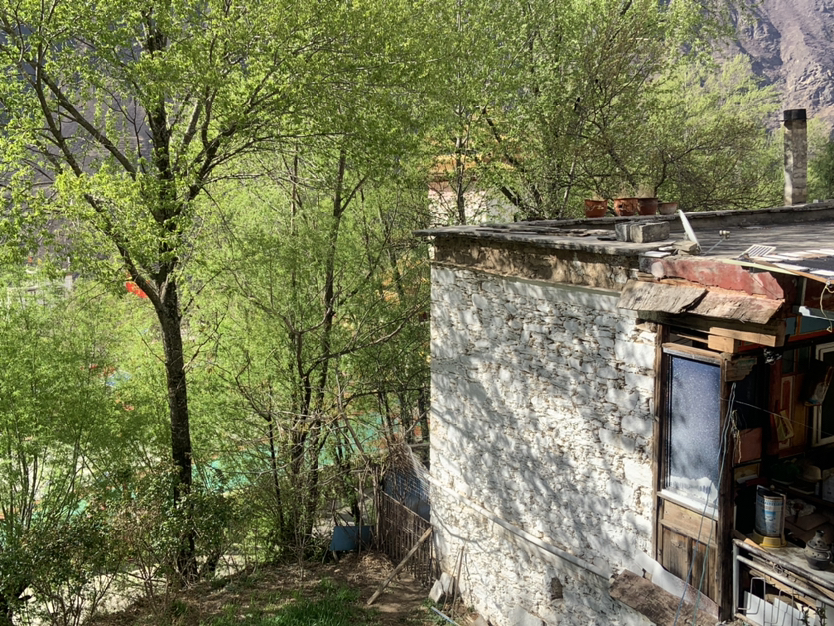 中路藏寨很适合慢慢感受,下午四点之后阳光会变得柔和,微风轻摇着柳绿,公路上来来回回着同一辆叫卖的小车,喜鹊也不怕人在檐下和树枝里来回游荡。