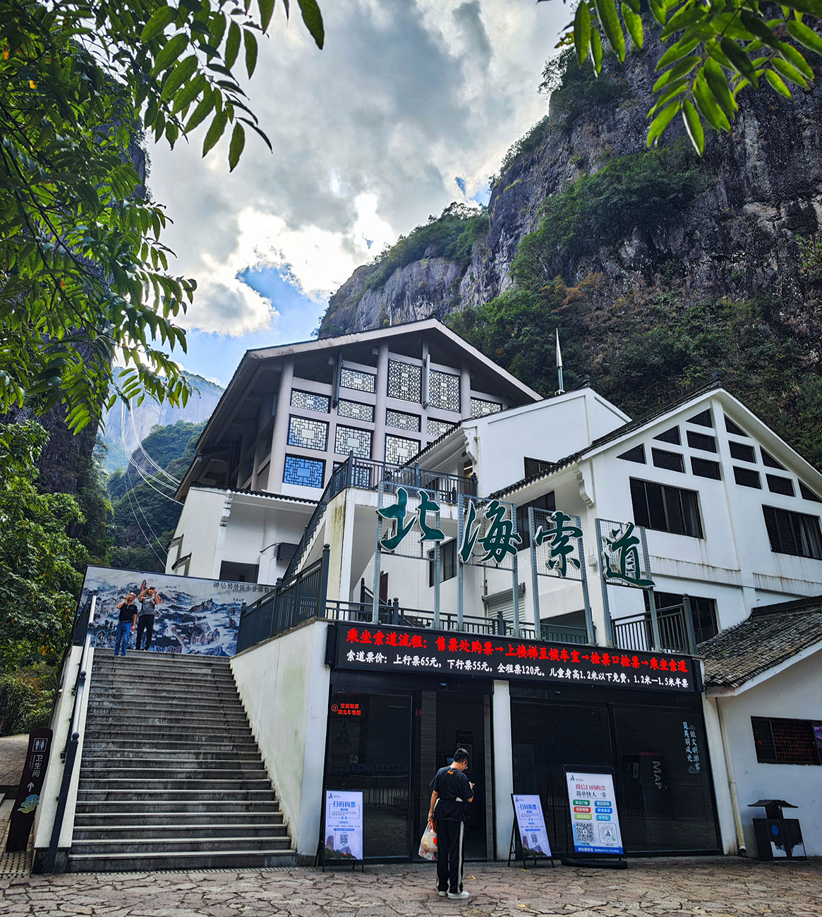 波浪形的卧龙桥,两边就是万丈深渊,探头出去看一看,还是挺惊险刺激的。