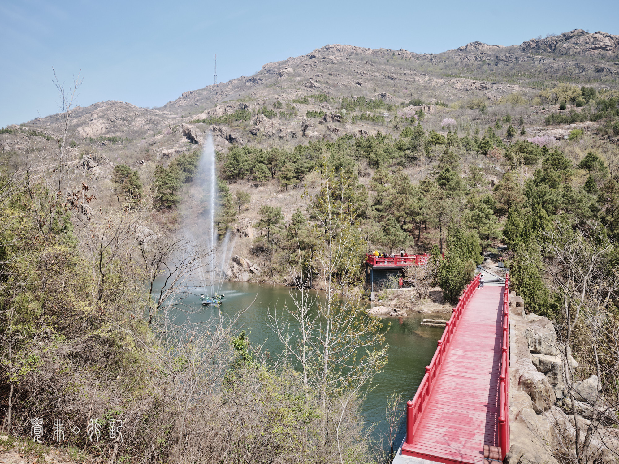 走到桃花涧最深处,再慢慢爬上山顶,站在桃木鹊桥俯瞰桃花涧,看着喊泉的泉水随着游人的高声呼喊越涌越高。