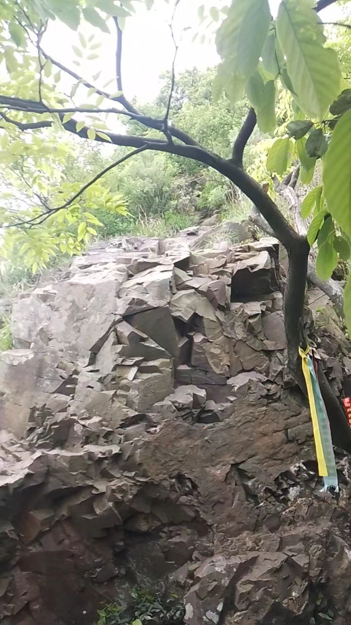 然后我们又从山庄这个方向出发了,爬向仙山头,经过了石头台阶,还有后面的上坡土路,在仙山头我们陆续休息修整了一会就开始下山了,仙山头下来几米有个岔路口,容易走错,我们要向前直行,继续走山脊线,爬了一段长长的石头下坡路,1点半下到公路。这里可以下撤回出发点喝鱼头汤。