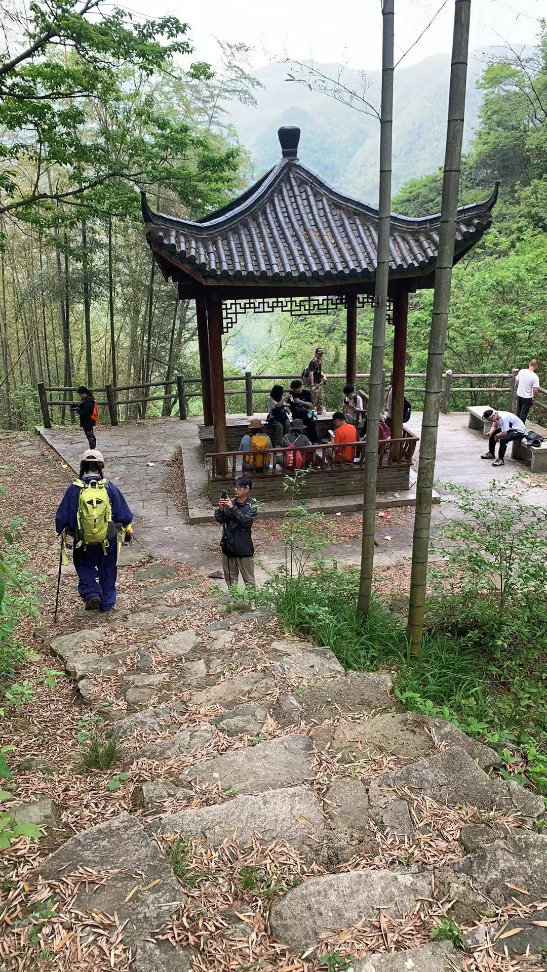 从冠佩村出发,往茭湖古道,独特风韵的山间古道,这种山道为连续上坡,主要以青石板石阶铺就,也被称为云梯,一路溪水潺潺,蜿蜒在竹林与山野之间。