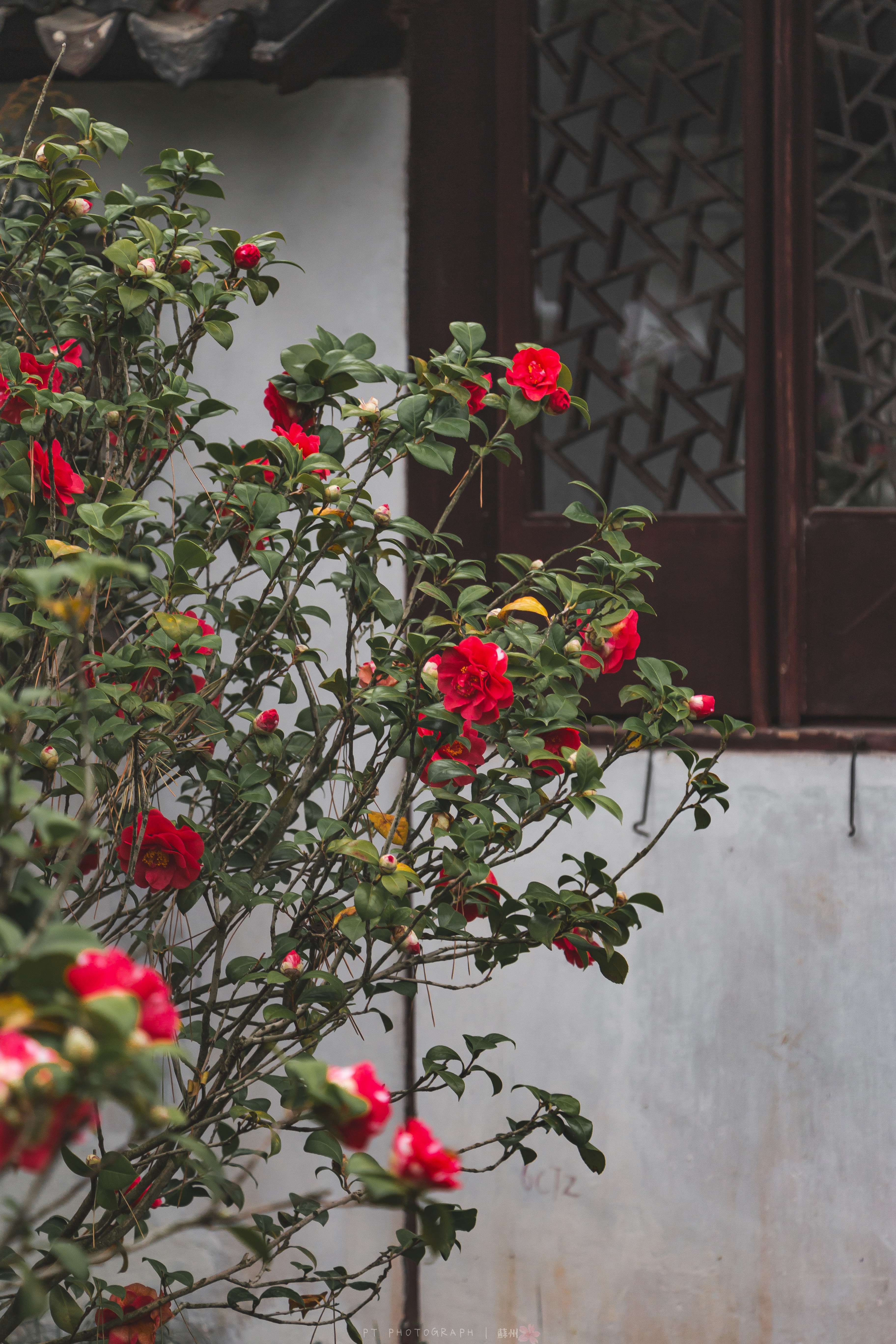 到达留园的时候山茶花瀑布已谢,只剩一点跌落在瓦上的几朵山茶花留了一点点遐想