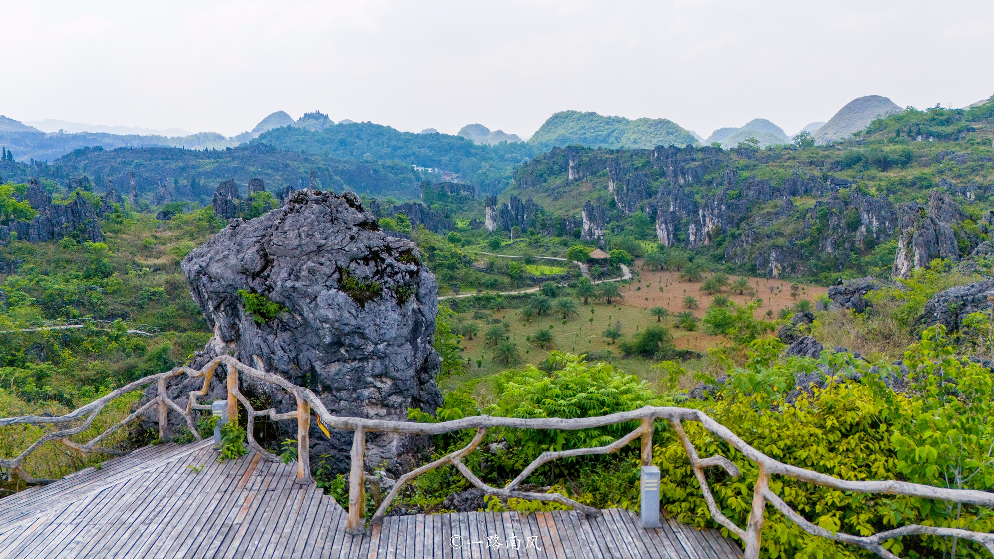 此时清风扑面,峰林梦幻,山头似有薄雾弥漫,仿佛误入画壁之中,有种“人在画中游”的感觉。