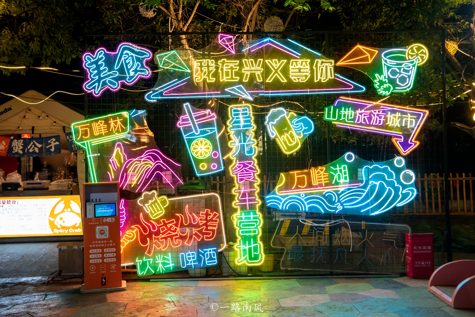 兴义是黔西南的州府,也是全区的交通枢纽、最繁华的地方,为了方便后面的行程,我们四个晚上都住在黔阳酒店,走路不到十分钟就来到马岭河夜间文化旅游消费集聚区,原本没有什么期待,没想到收获了惊喜。