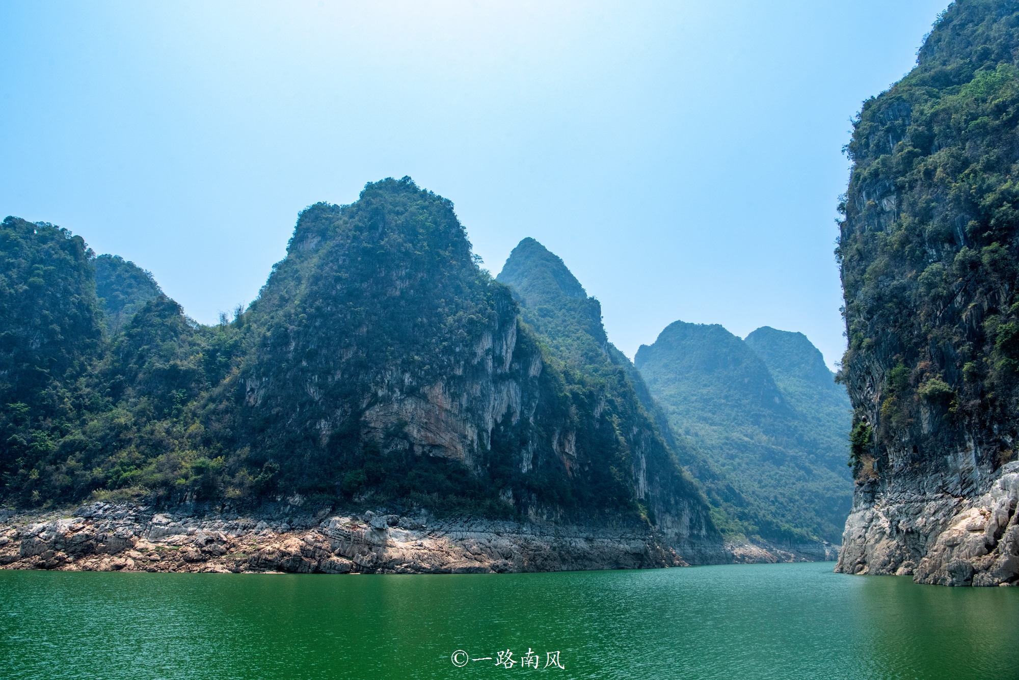 同样是喀斯特山水风光,这里更像长江三峡,但景点更为浓缩。