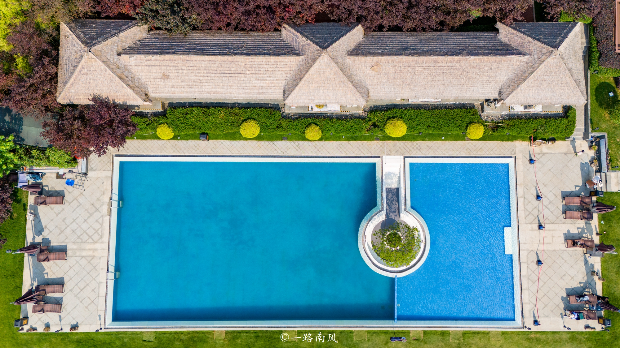 这里有一个蓝色的网红泳池,可以欣赏壮丽的喀斯特峰林奇观。