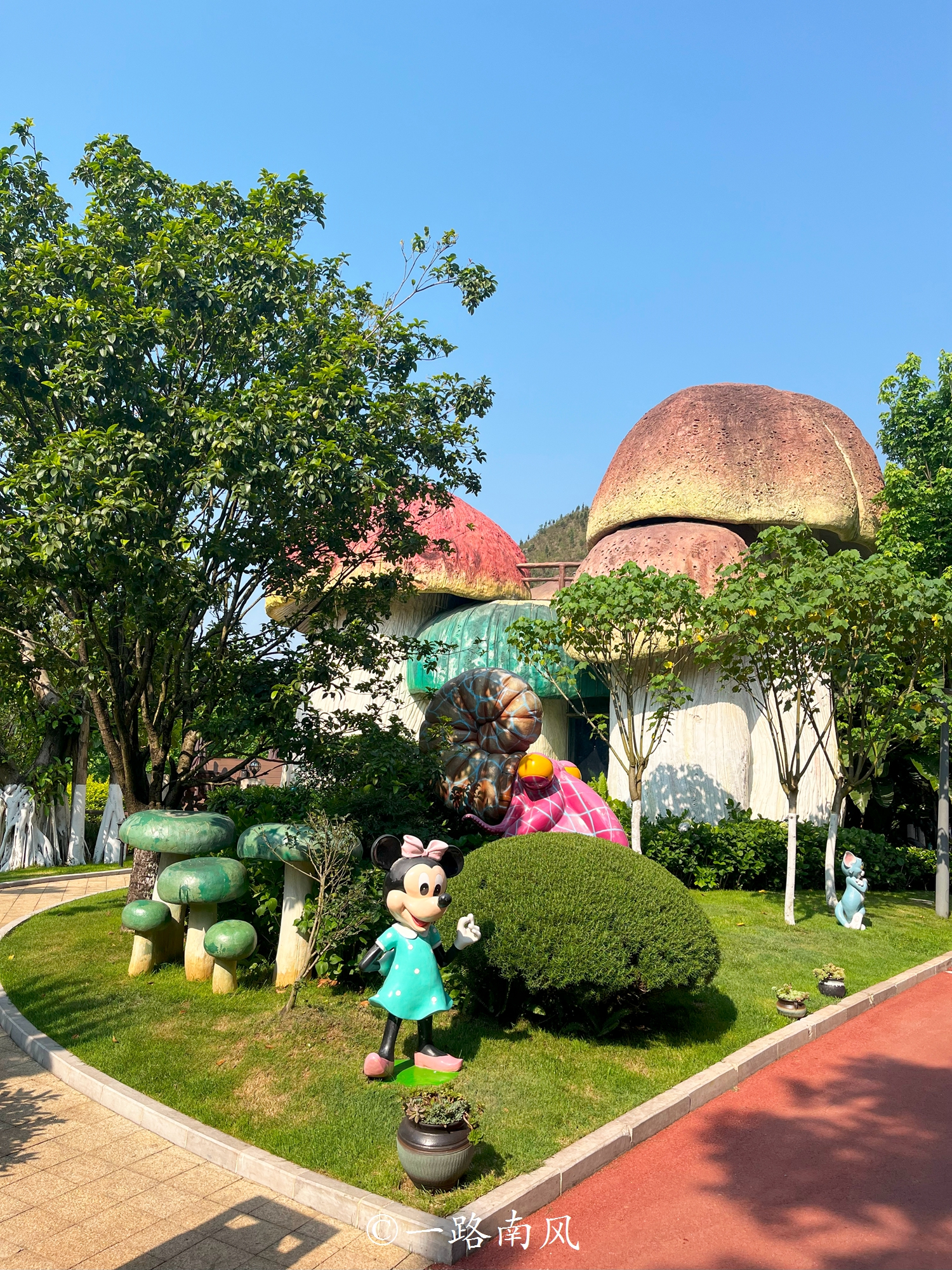 蘑菇街就在山脚下,除了造型各异的蘑菇屋,还进行了精心的花园式设计,让人在视觉上和心理上都感到愉悦。