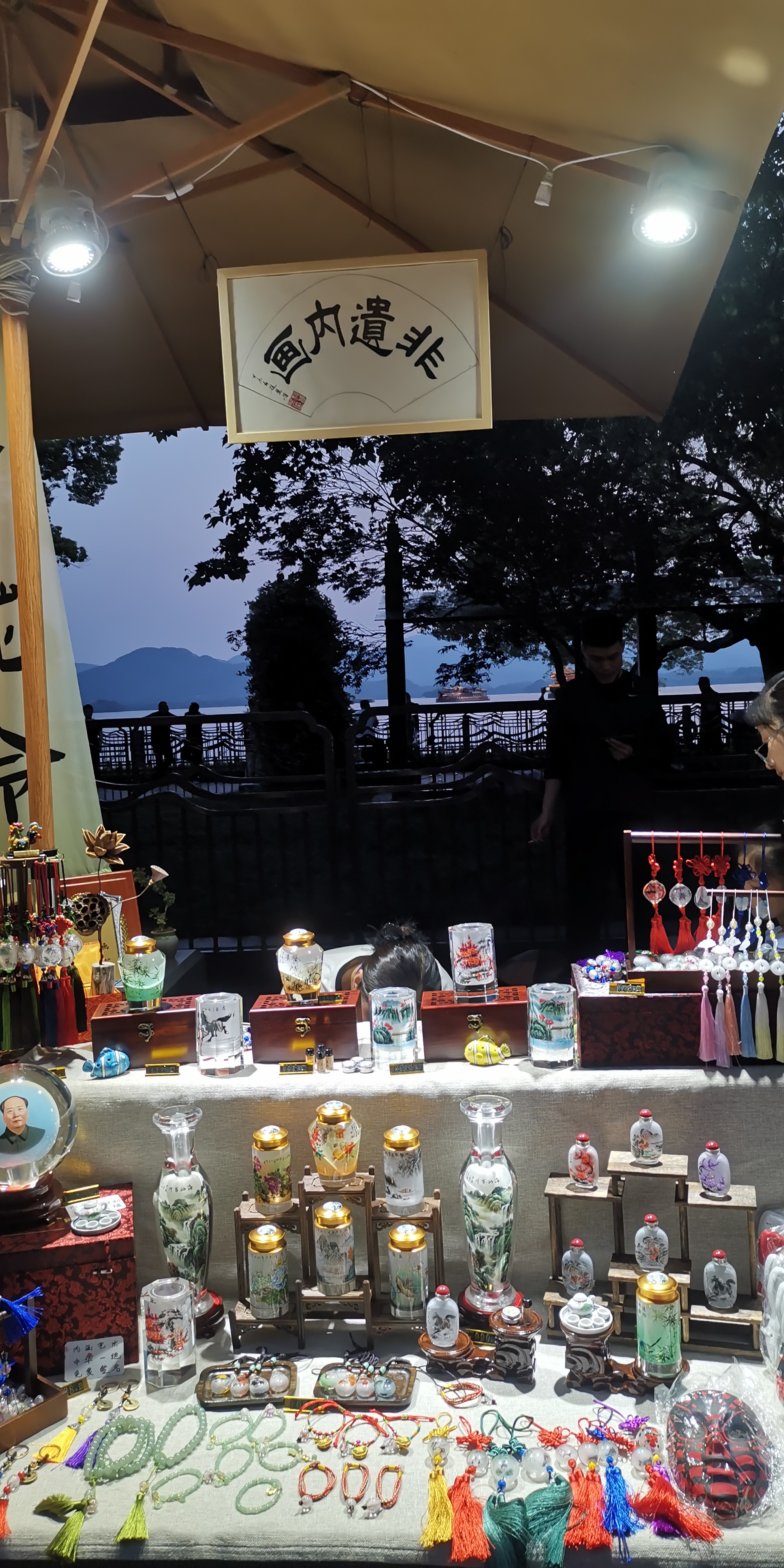 今天逛到杭州西湖边最繁华、最著名的湖滨步行街,竟然发现有“摆地摊”发展“夜经济”的文创夜市。