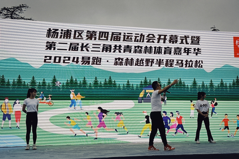大早上五点多起来,赶地铁,匆匆的赶到了起跑点,跟着主持 赛前热身