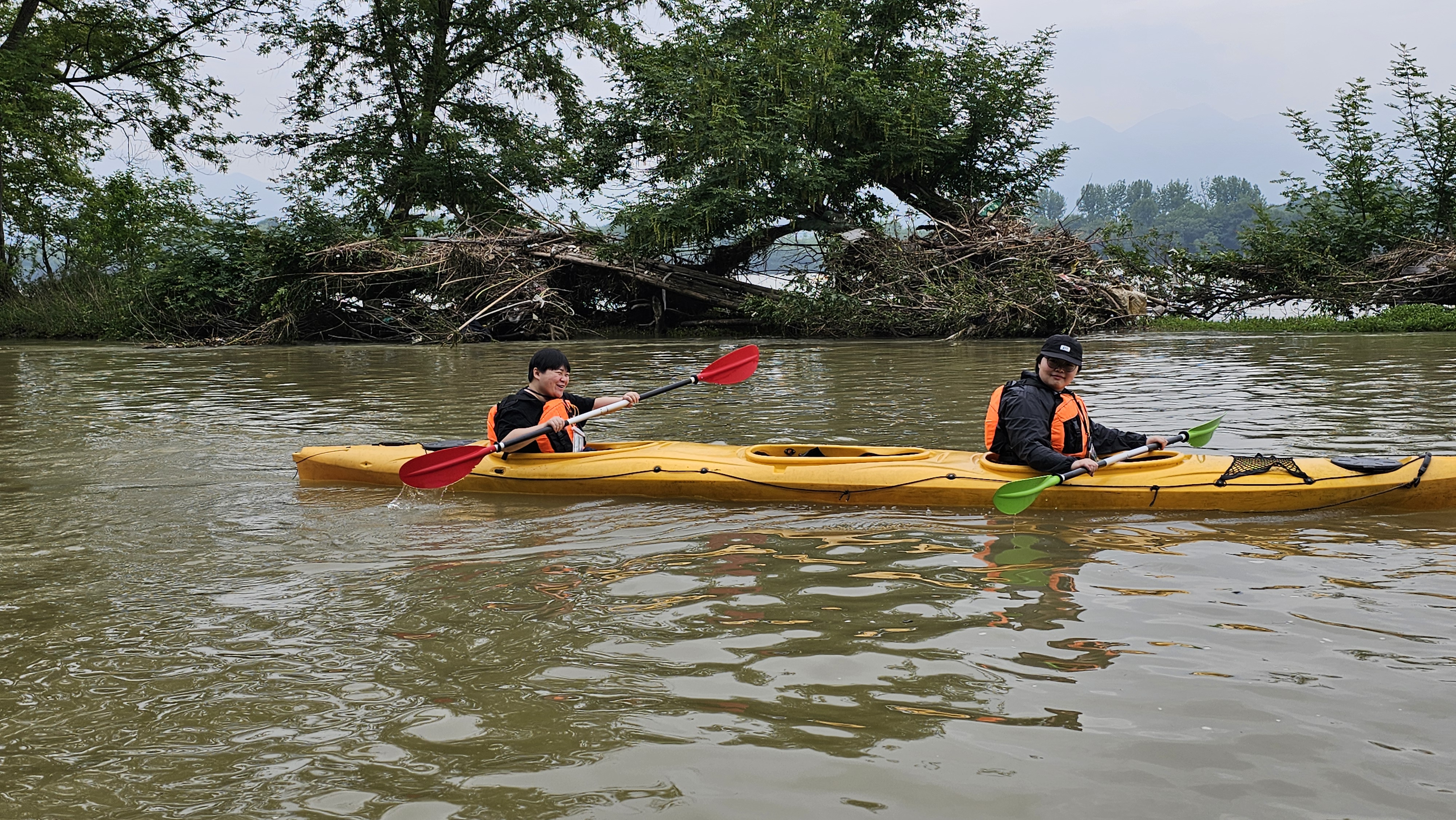 今天的行程满满,玩了皮划艇和自行车,在富春江内玩皮划艇部分水域水流比较急,不过有救生艇会在队员飘远后及时我们拽回来哈哈哈哈哈哈哈,午餐后,大家环骑了桐洲岛,去探索了岛上的边边角角,很是惬意