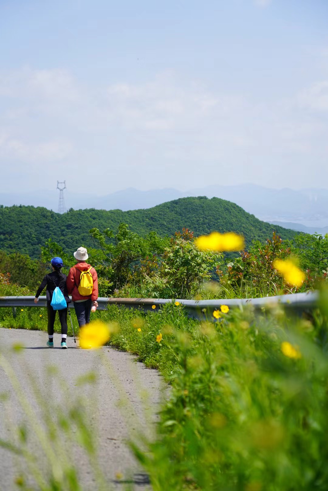 沿着古道前行,我们终于来到了期待已久的风车公路。这里是宁波的一大亮点,全长约50公里,蜿蜒曲折,两旁是黄灿灿的花朵,仿佛是一片花的海洋。