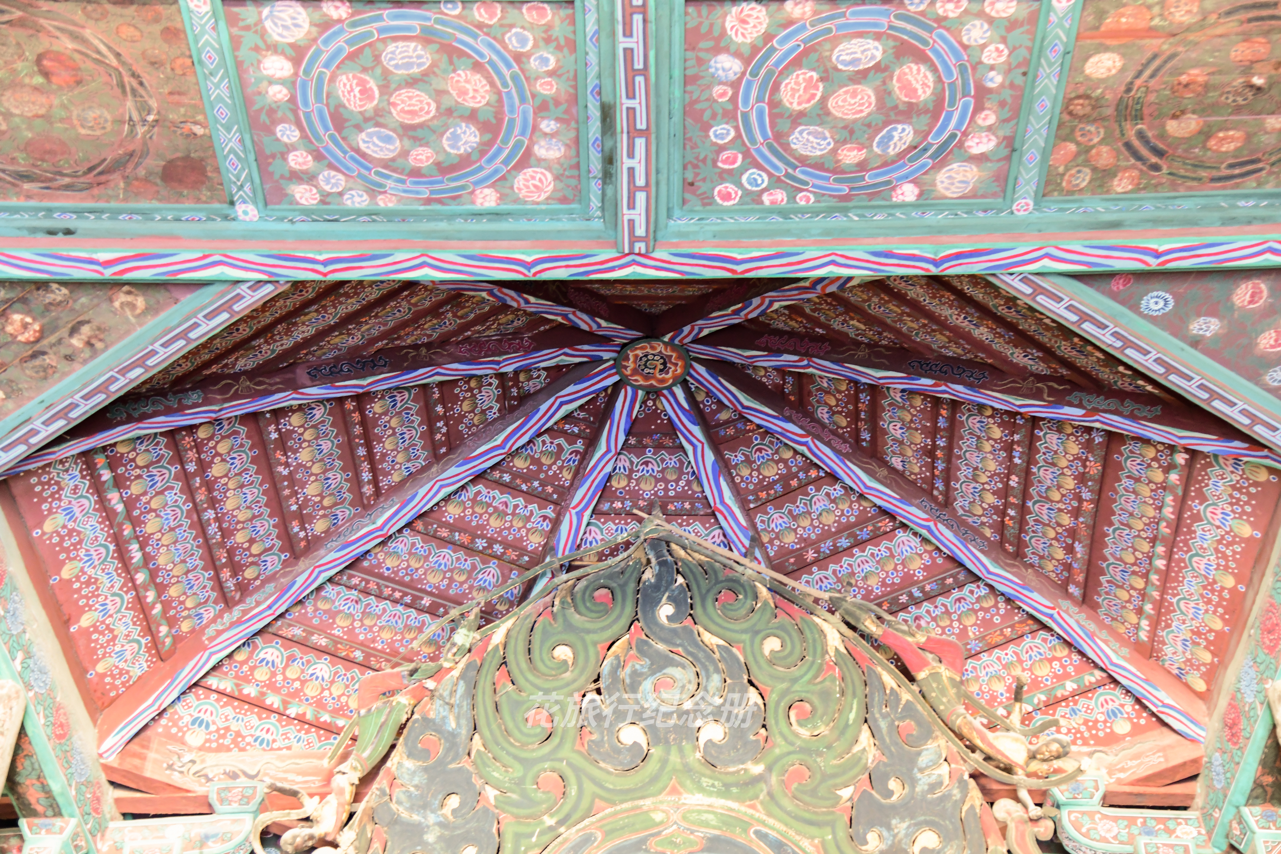 殿内清代壁画,眼睛根本从藻井上移不开。