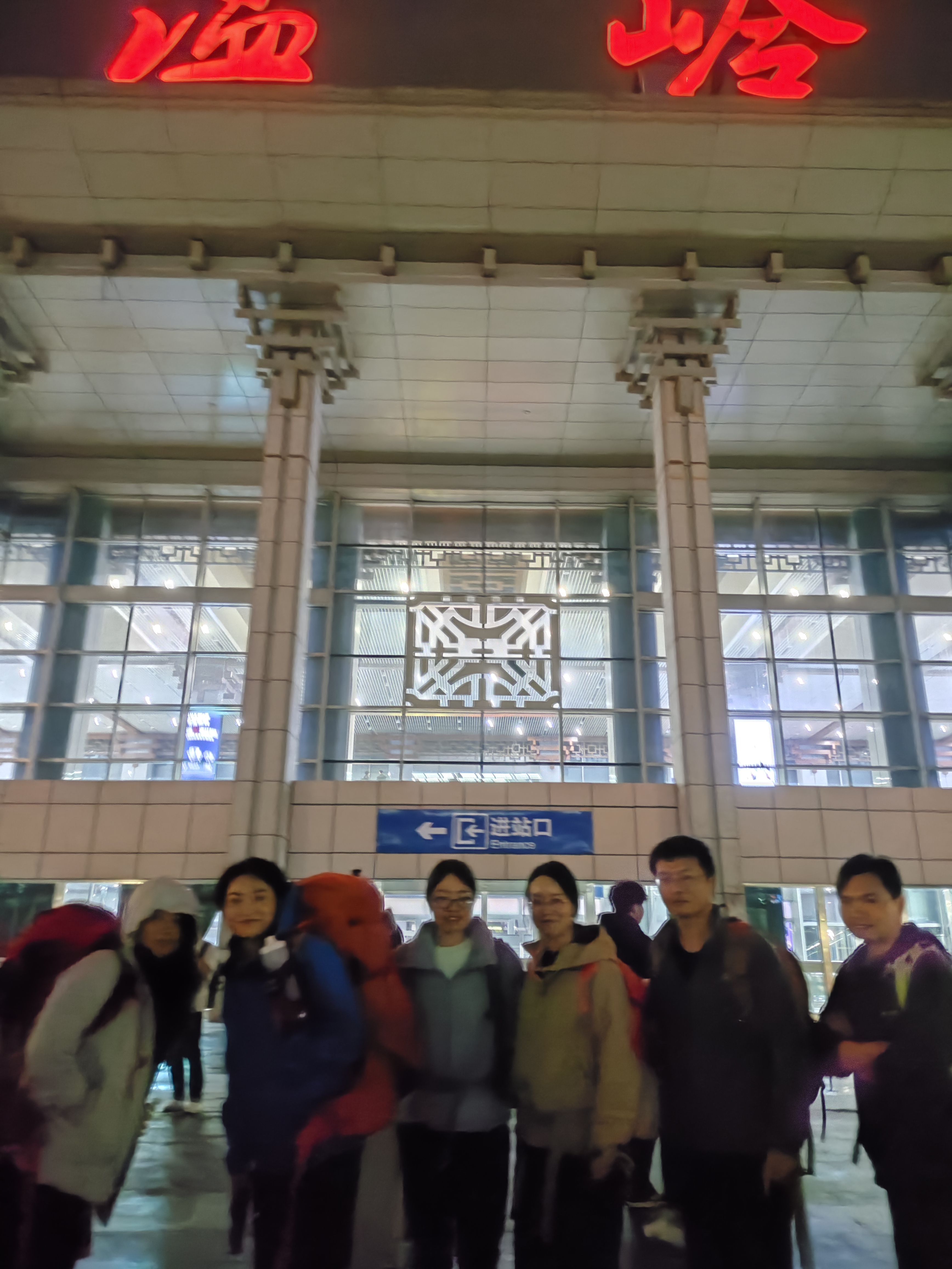 4月3日晚上,我们一行人集结在上海虹桥火车站,随后乘坐G7561次列车驶向了温岭。晚上22:20左右,在夜色笼罩下,抵达温岭火车站,无心大哥帮我们6人拍了张合影,留作纪念。随后,步行1km左右到达腾红宾馆,转入休息模式,为接下来三天的徒步养精蓄锐。就这样,我们的温岭徒步行程正式开启了。