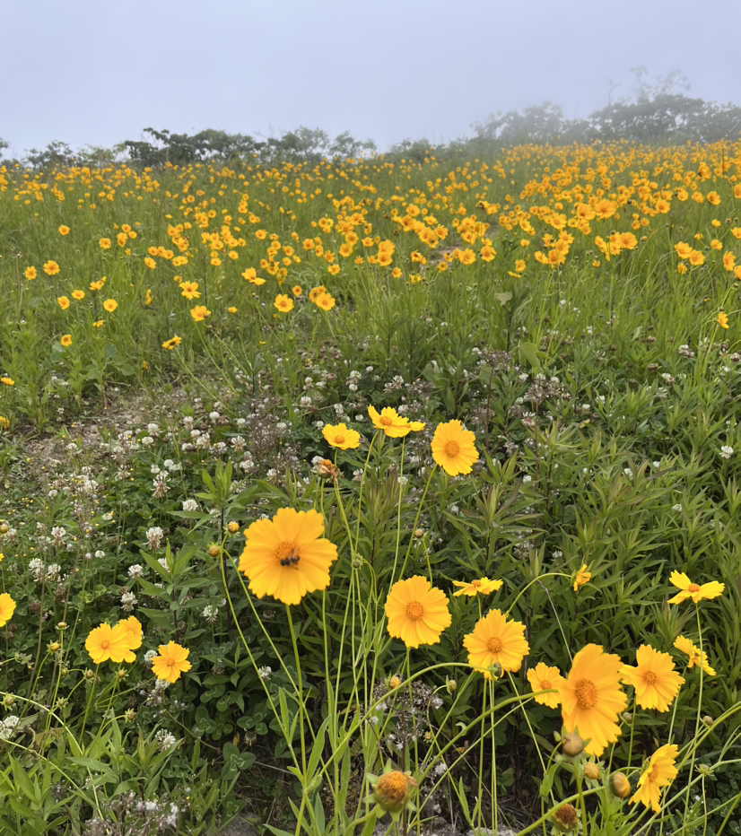 山顶凉风习习,云山雾绕,建议阴天来,大风车隐约可见,群山环抱,视线没有遮挡,很不错的路线呢,强烈推荐,爬升400多米属于无痛爬升,可以边走路边看景,不知不觉中达到锻炼效果。