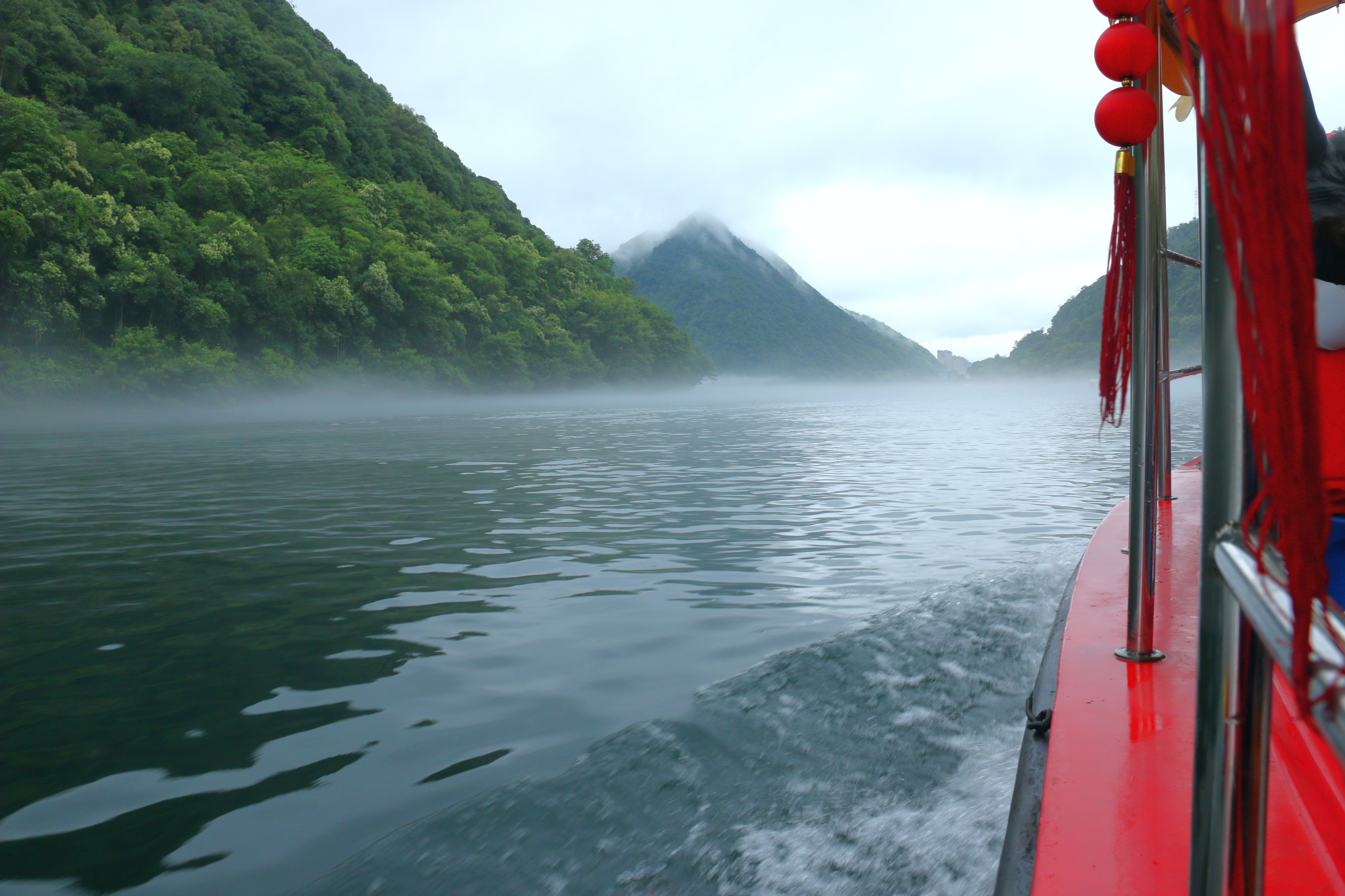 驱车再次回到新安江码头,来到这三天旅行的最后一站,坐上龙舟(其实是电动的)再游新安江,小朋友们拿着游侠客风车,吹着江风,路过自己的酒店,依旧是江面层层雾气,无论夏天有多热,永远保持17度的新安江上,真的太适合避暑了!