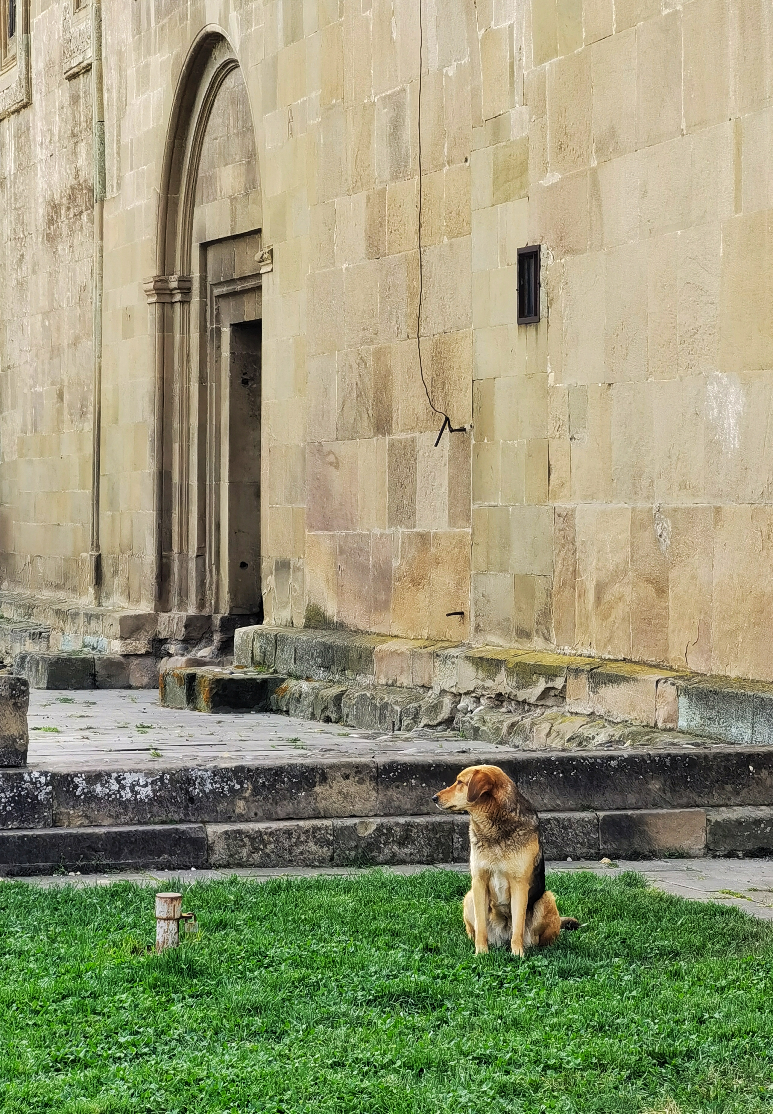 第一站季瓦里修道院,在姆茨赫塔附近山顶上,修建于公元585年至604年间,用来保存格鲁吉亚第一位基督传教修女圣尼诺在此树立的最早的用葡萄藤做的木质十字架,山顶可俯瞰姆茨赫塔古城全景以及接下来要去的生命之柱大教堂,山下库拉河和阿拉格维河在此交汇,两条河由于源头不同,一条黄一条蓝,颜色差异很大。