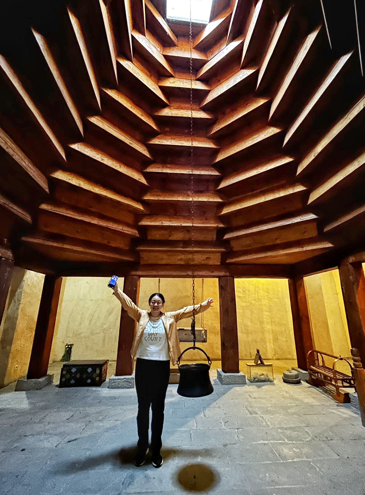 格鲁吉亚酒庄,内部温度较低,大家在门口领取披肩后由专业向导带领参观,了解格鲁吉亚葡萄酒文化、历史和酿造工艺,采用一种深埋在地下的大陶罐用于发酵和贮存葡萄酒。有4种不同口味的葡萄酒供大家品尝,配以佐酒小食。
