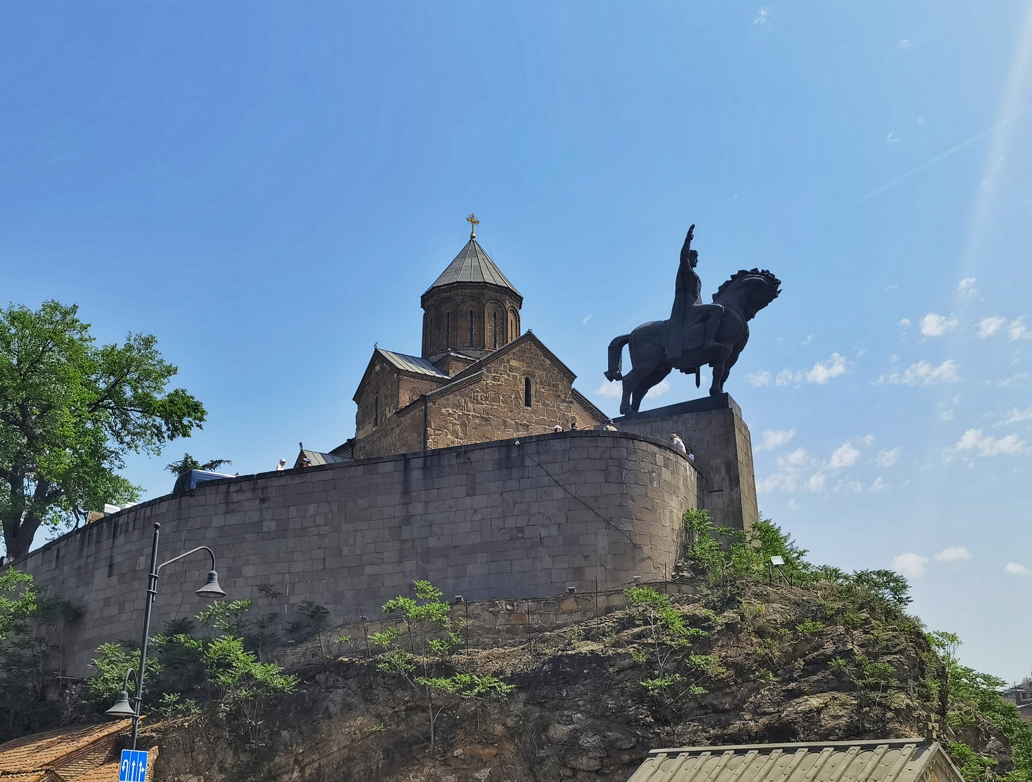 始建于公元5世纪的梅特西教堂,坐落在老城对岸,这里曾经作为监狱使用,高尔基曾经被关押在这里,教堂旁边有一座“格鲁吉亚之父”的雕像。