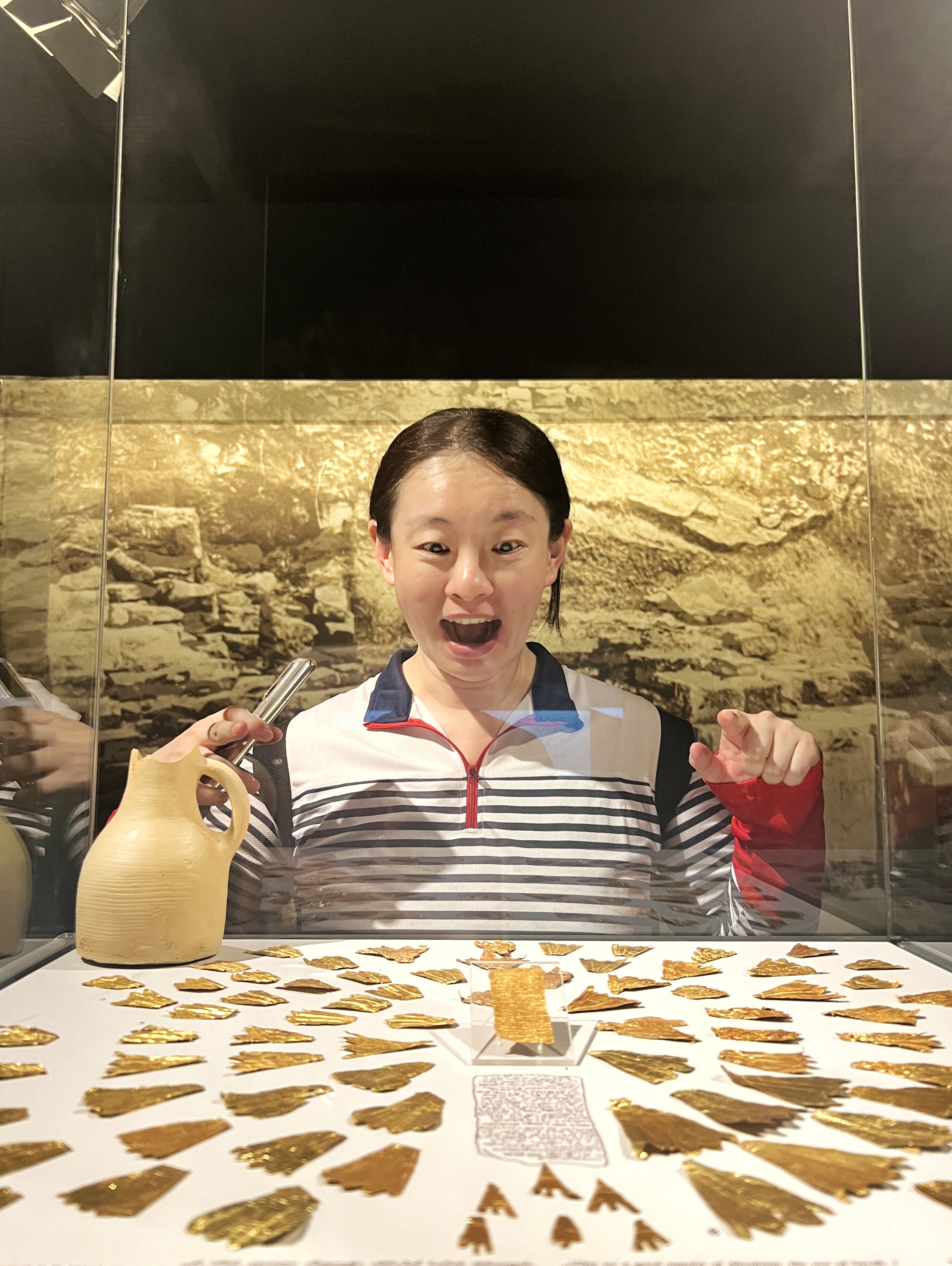 公元前7世纪祝酒小人的形象,这是放大了150倍的雕像,前一天在西格纳吉也有一个。