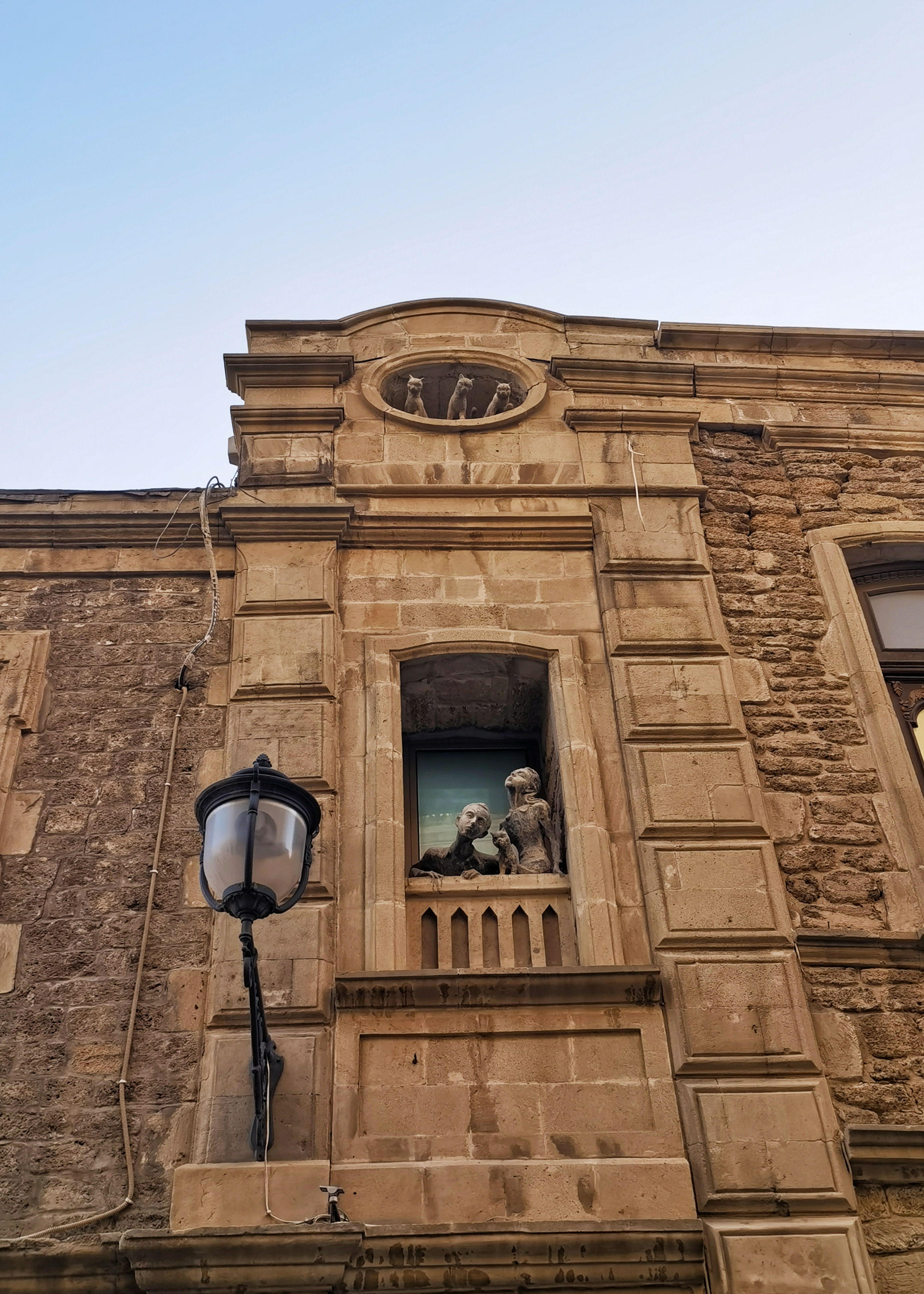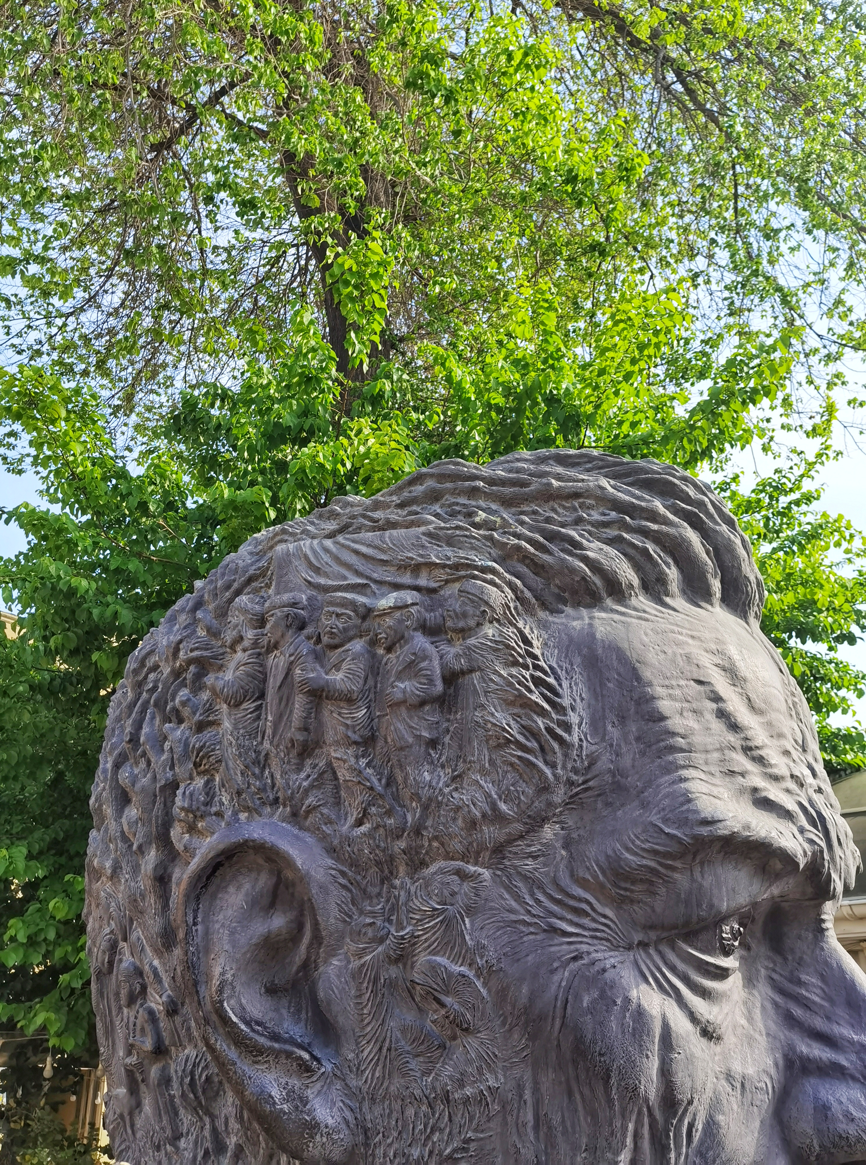 这个头像是阿塞拜疆本土一个有名的作家、诗人瓦希德,雕塑的下半部分像个树根,寓意着他的作品都深深扎根于当地的土壤,上面的雕塑都来自于他作品的某一部分。