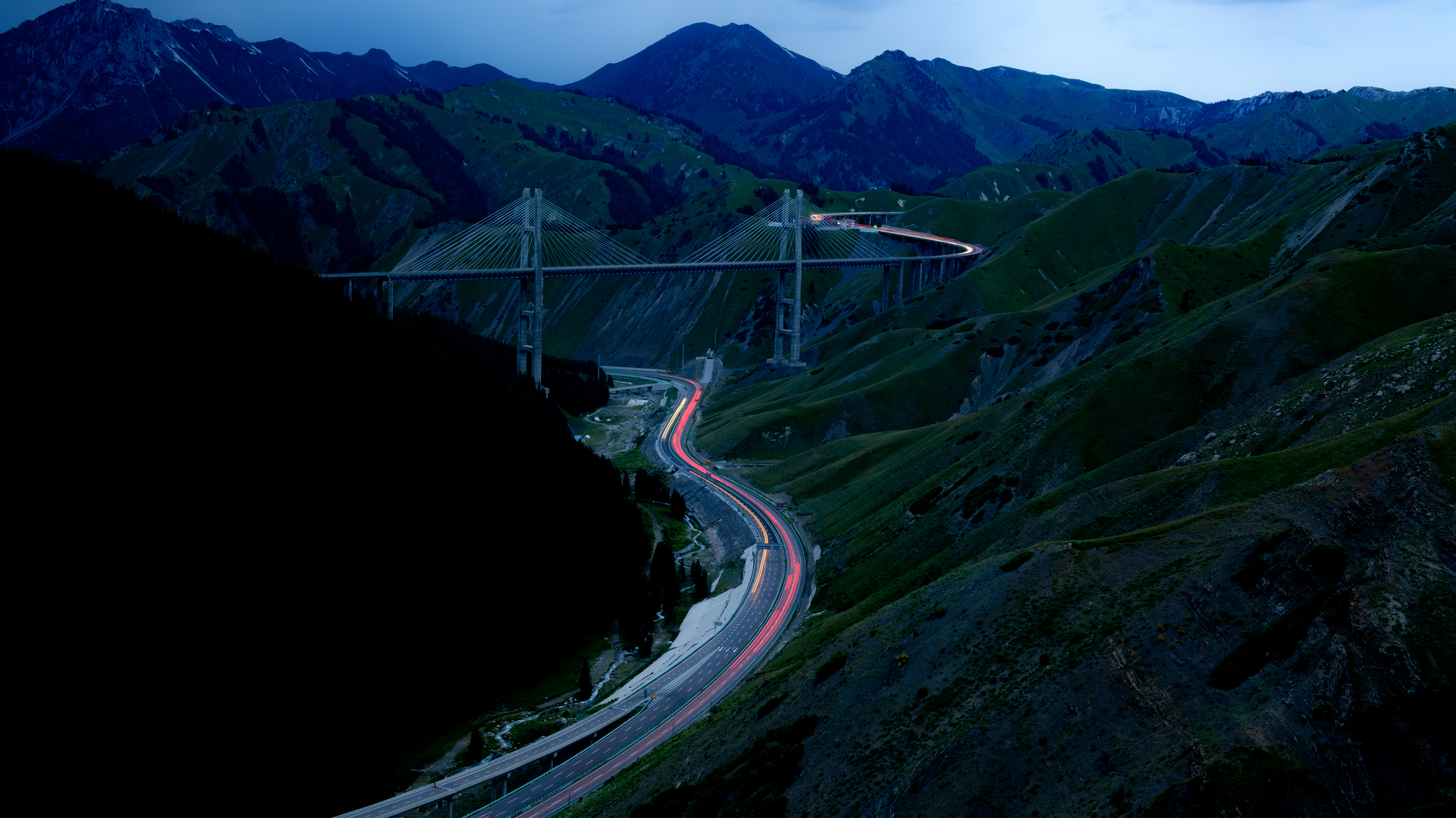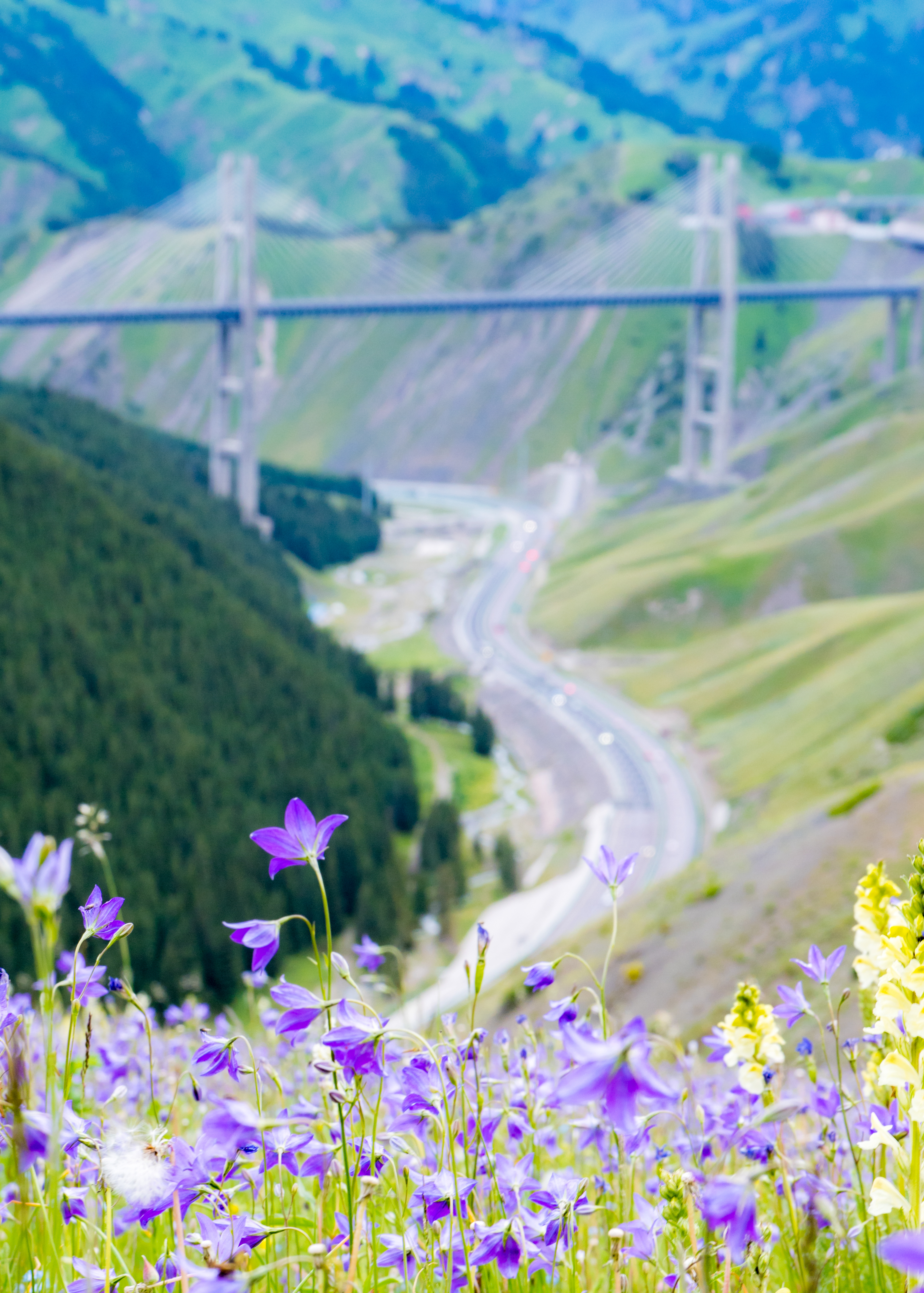 果子沟大桥位于伊犁河谷和赛里木湖群山的结合部