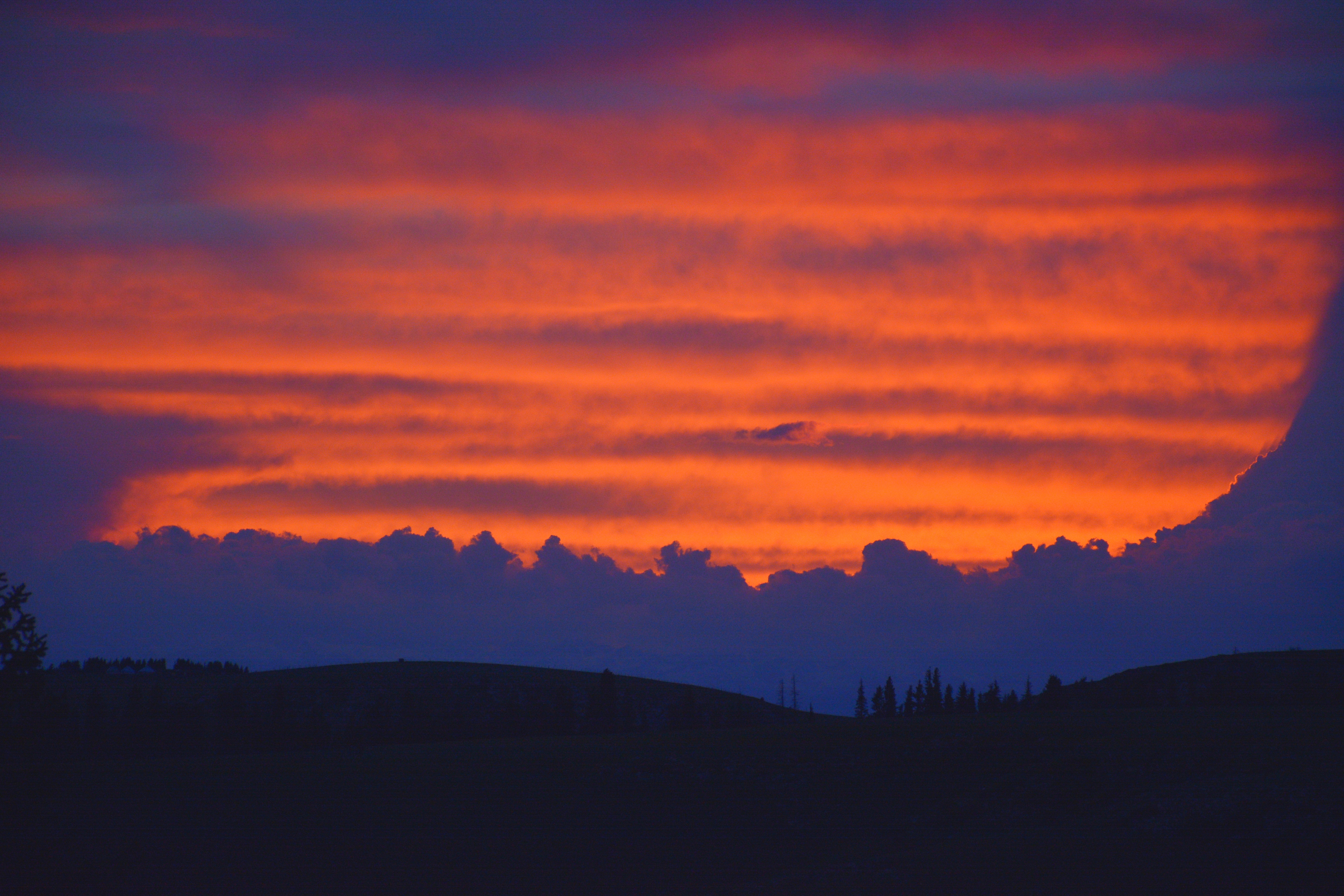 正当我们开怀畅聊之际,让人惊喜的是,这阵雨后此时天边竟然出现了美丽的晚霞!晚霞的形状和颜色都非常迷人,整个营地的人都忍不住不断惊呼!