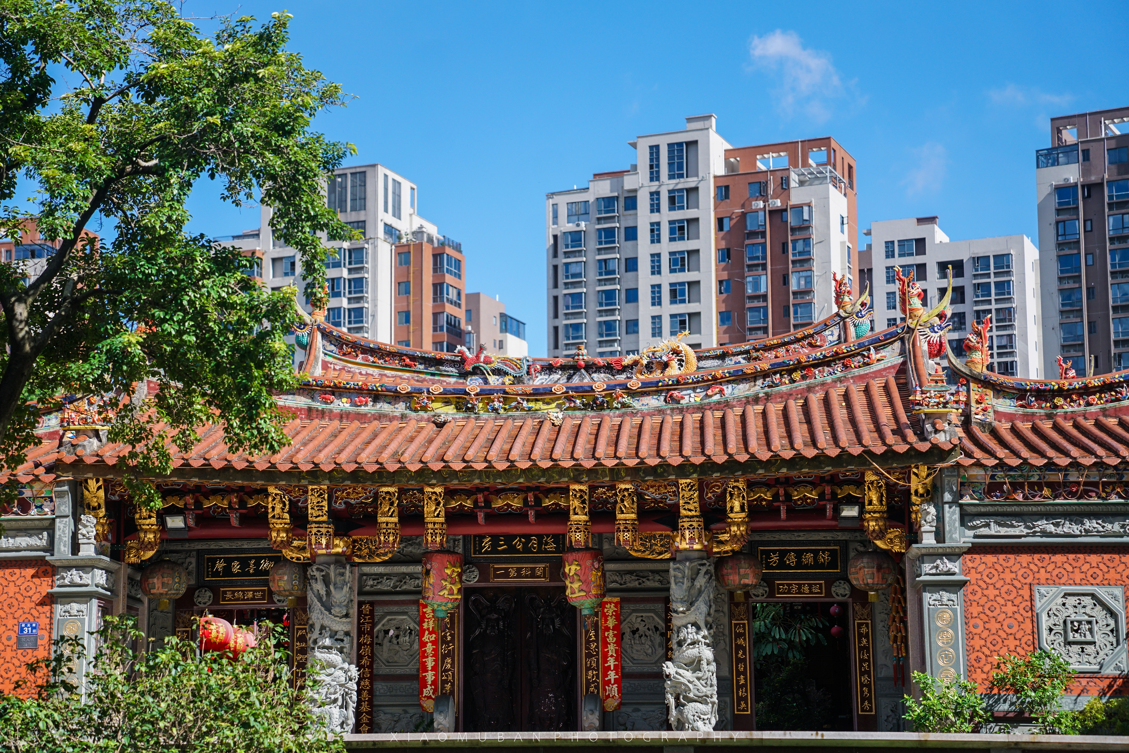 来到五店市是在一个盛夏的午后,当我推开出租车门,下车站定,便不可自拔地被眼前的景色吸引住了。盛夏午后,蝉鸣声声,微风徐徐,蓝天白云下红砖古厝建筑,精美的宗祠可见木雕、线雕、影雕、浮雕,踏着带有岁月痕迹的石板路,我开始探寻这座闽南传统建筑宝库。