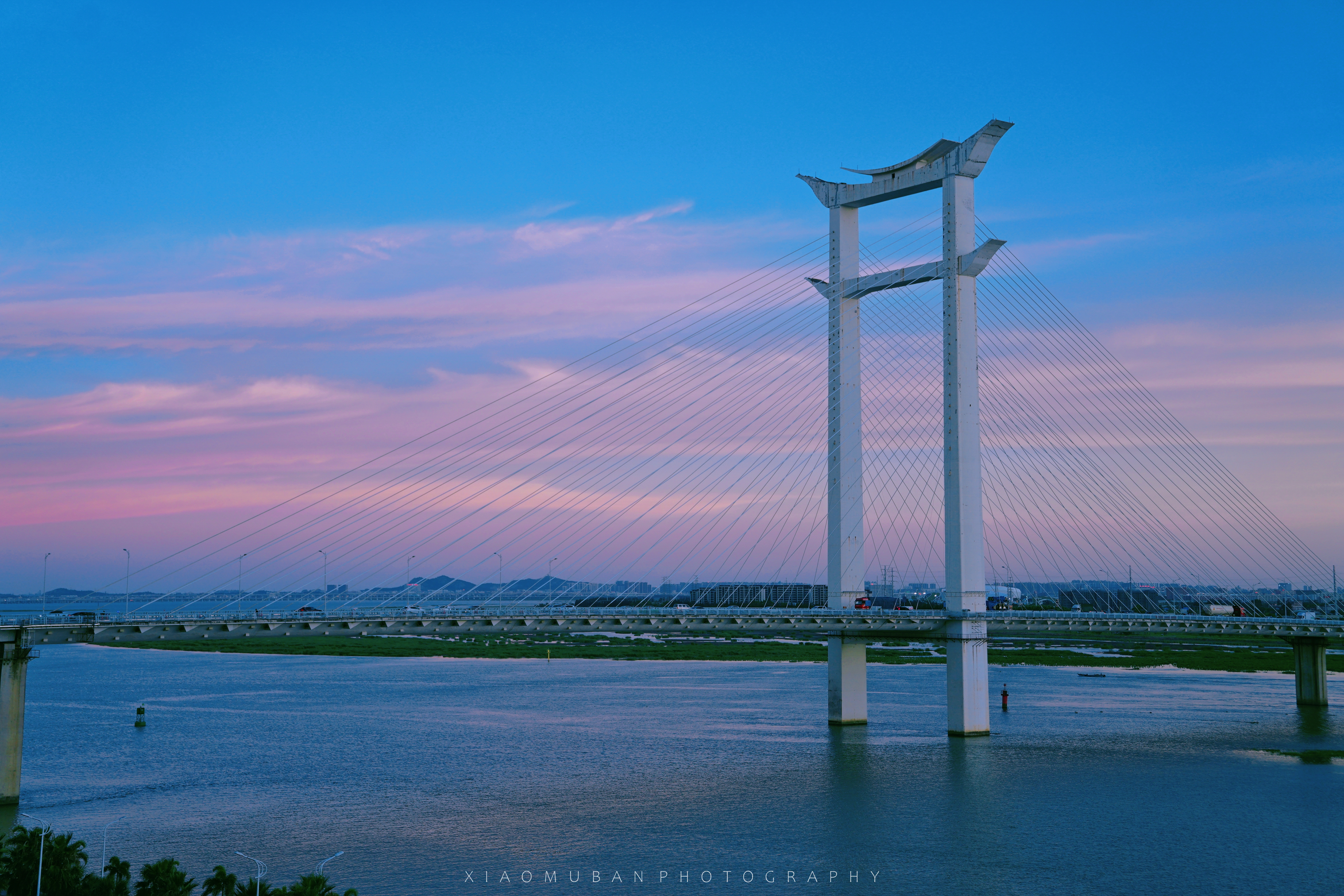 在小小的西堤公园有一个看跨海大桥的观赏点,遇上一个好天气,看海面闪烁的光影,发呆,等一场日落。西堤公园的草坪整齐鲜亮,坐在石椅上,背后高架桥车辆繁忙,身前公园静谧闲适,那一刻在脑海中定格了许久。