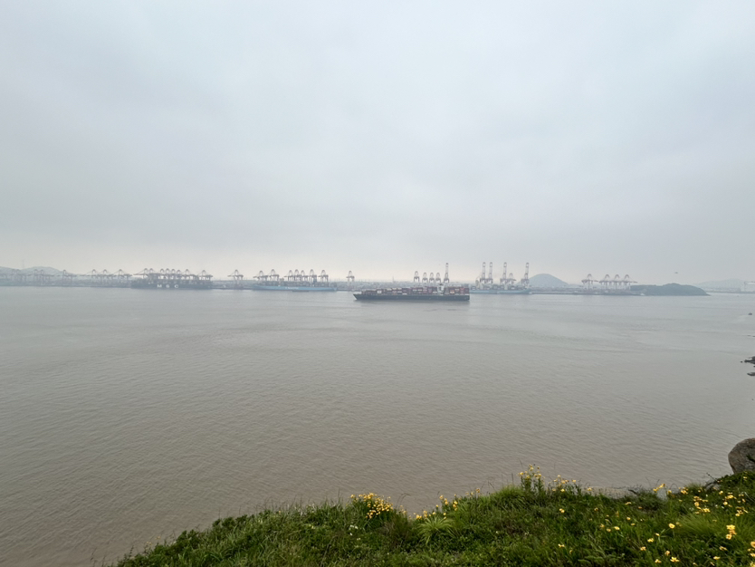 除了碉堡和防空洞外,大洋山岛还有许多值得探索的地方。一路小黄花菊科植物“千里光”欢快地迎接我们的到来。沿着海边漫步,聆听着海浪拍打着礁石,队员们三五成群,纷纷在岸边翻动石块,亲手拾取海螺、贝壳,捕捉小螃蟹、跳跳鱼,来一场与海洋生物的亲密互动,不亦乐乎。回程之前,我特意登上小梅山顶的临港亭,俯瞰整个海岛的美景和对岸壮观的洋山集装箱深水港码头全貌,顿时间海风吹走了焦虑与烦恼,心旷神怡。梅山顶上还有许多自明清以来的崎岖石刻,有的刻画着海浪和船只,有的则记录着岛上的历史故事,还有一处是标记着日全食最佳观测点。我逐一欣赏着这些石刻,感受着它们所蕴含的文化底蕴和历史沧桑。