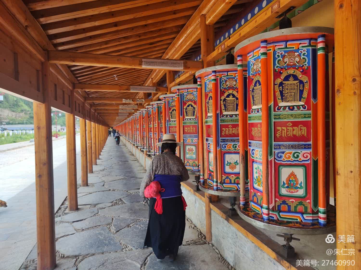位于阿万仓湿地畔的阿万仓寺庙,拥有世上最大的转经轮。寺庙在阳光照射下,金碧辉煌。