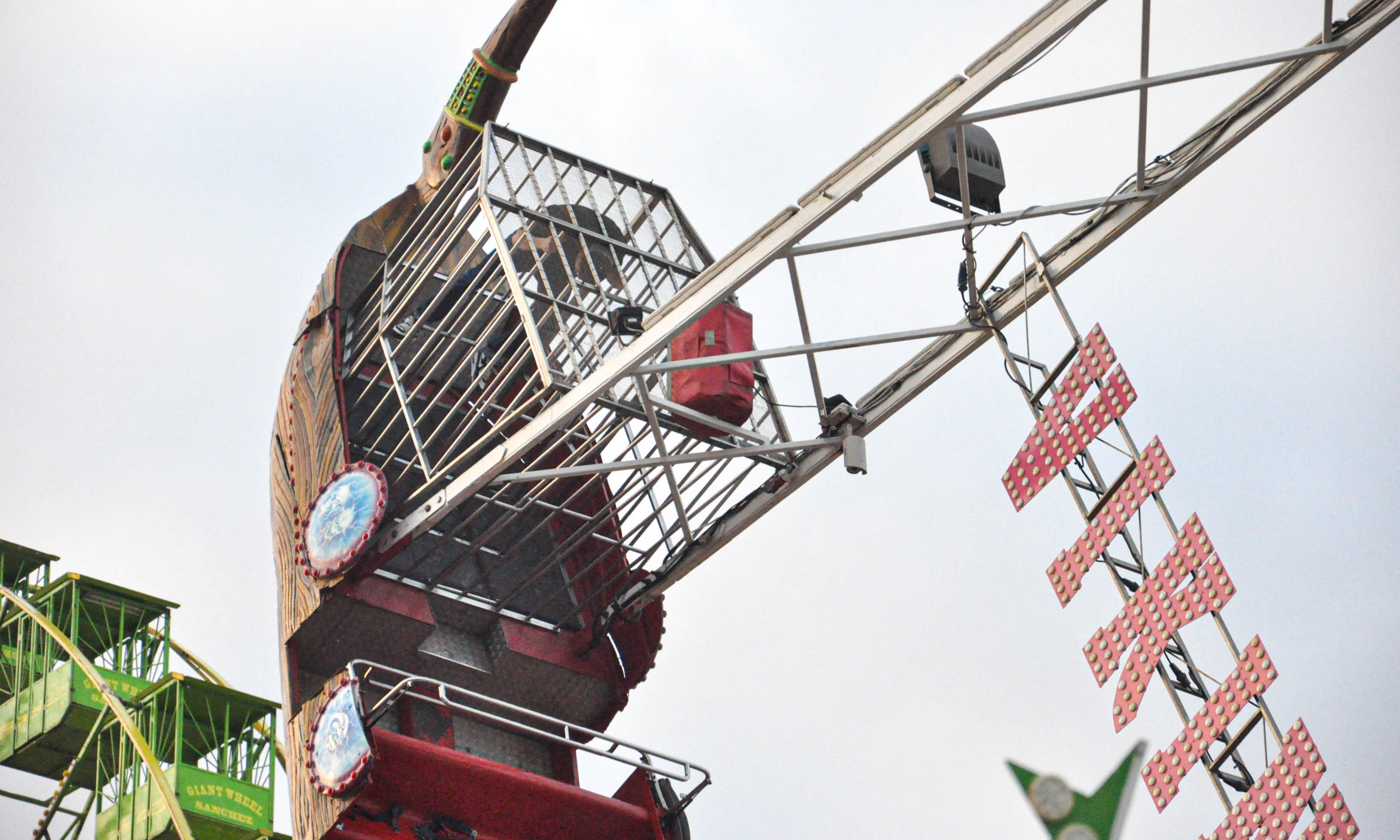 海盗船仅有一人并且还是站着所在笼子中摇摆,太刺激了我们三个只远观。